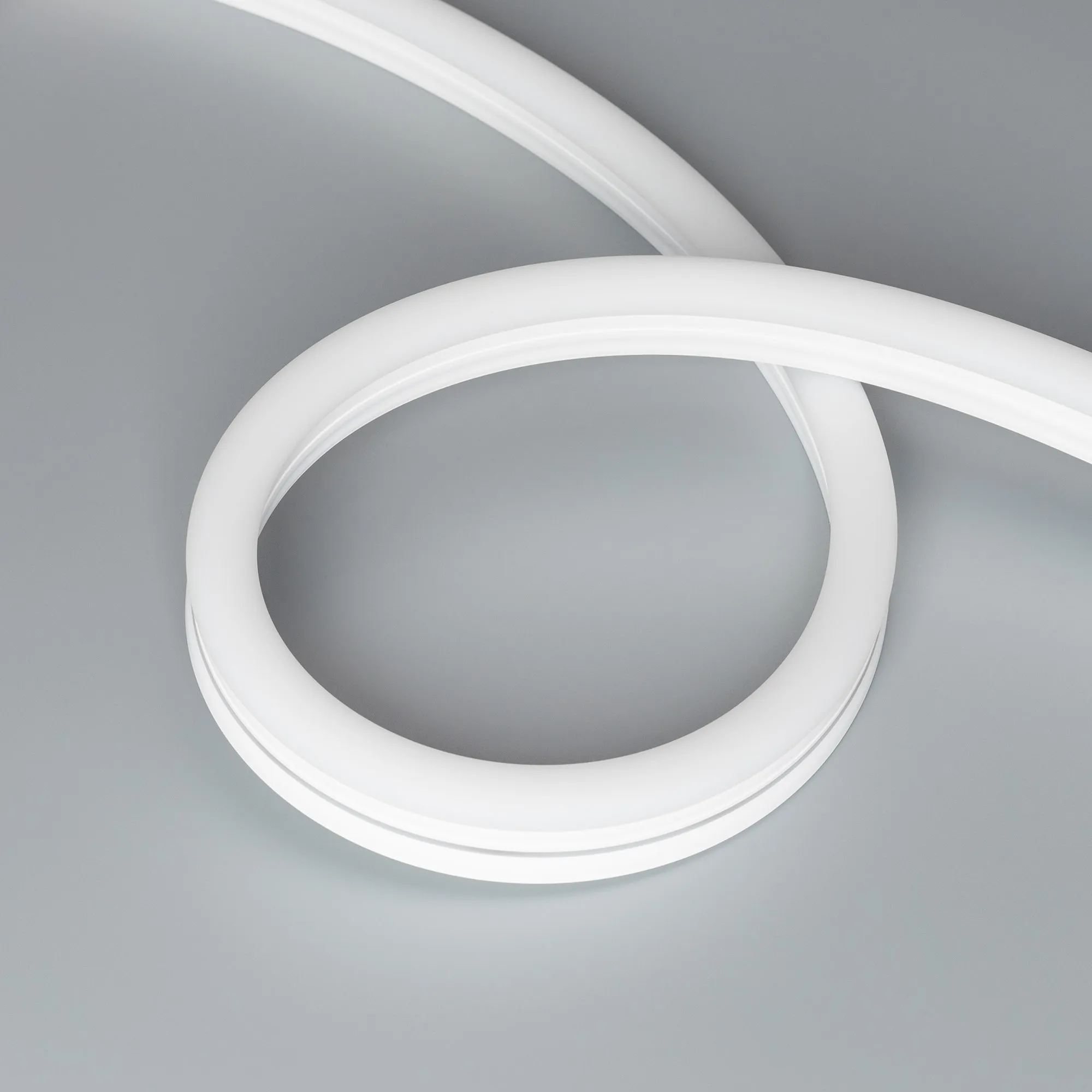 Гибкая герметичная лента (неон серии MOONLIGHT), сечение 12×24 мм. Светодиоды SMD 2835 140 шт/м. Цвет свечения ДНЕВНОЙ (5000 К), индекс цветопередачи CRI>80, световой поток 430 лм/м, угол излучения 178°. Мощность 9.6 Вт/м, питание 24 В. Класс пылевлагозащиты IP68. Размеры 5000×12×24 мм. Мин. отрезок 50 мм. Горизонтальный изгиб SIDE, минимальный радиус изгиба 60 мм. Вывод кабеля с двух сторон. Катушка 5 м. Цена за 1 м. Гарантия 3 года.