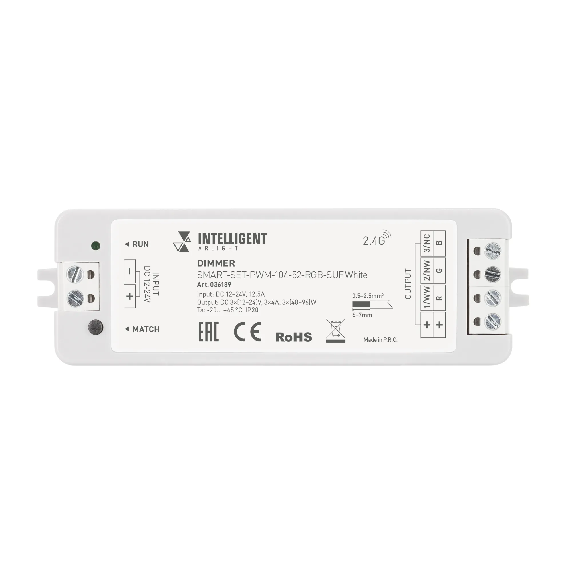 INTELLIGENT ARLIGHT Диммер SMART-SET-PWM-104-52-RGB-SUF White (12-24V, 3x4A, ПДУ LINE, 2.4G) (IARL, IP20 Пластик, 5 лет)