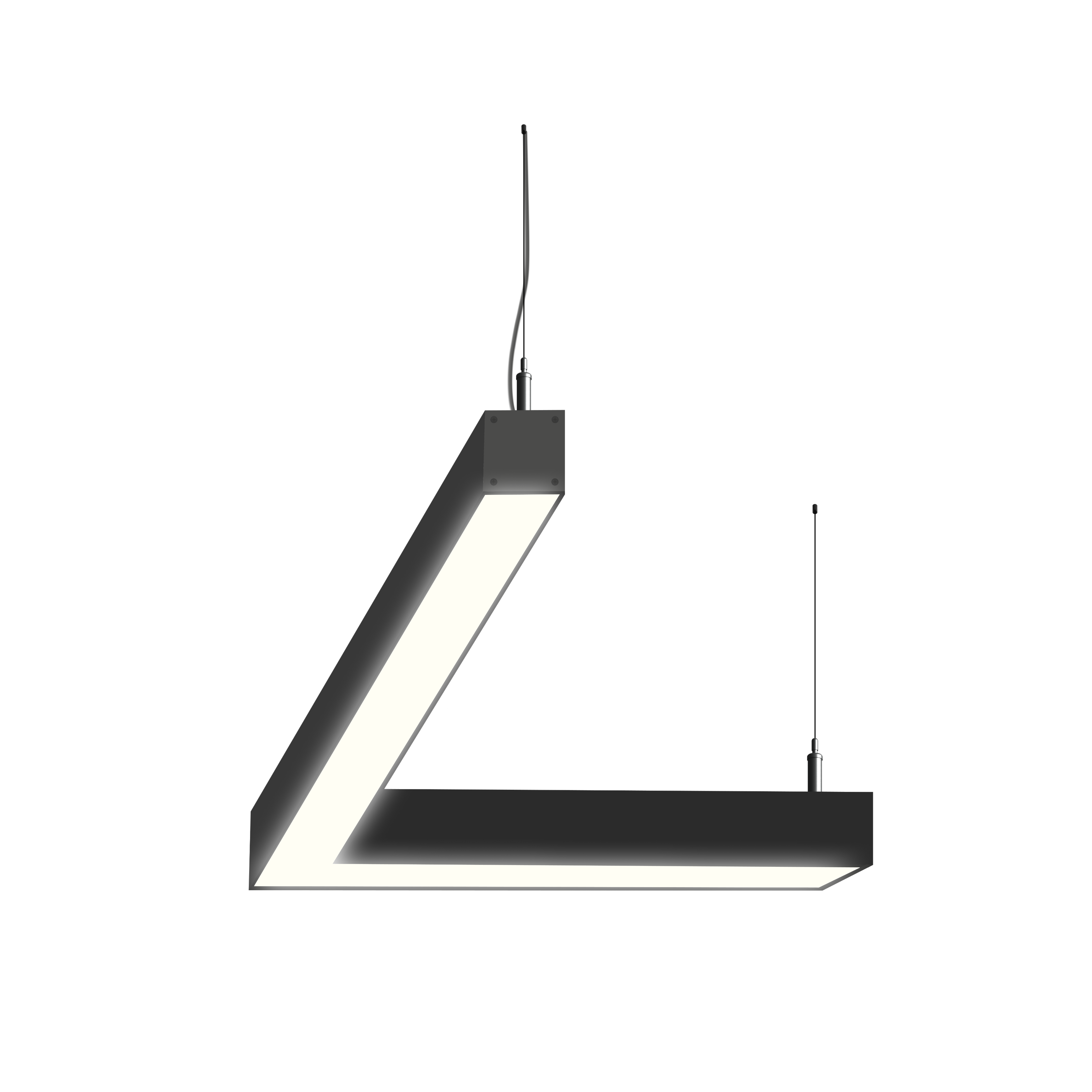 Светодиодный фигурный светильник MS-CORN L-образный 45гр. размер профиля 50х50мм длиной 1000х1000мм мощностью 40W. Светильник собирается в алюминиевом корпусе с матовым рассеивателем, который дает равномерную засветку по всей площади.