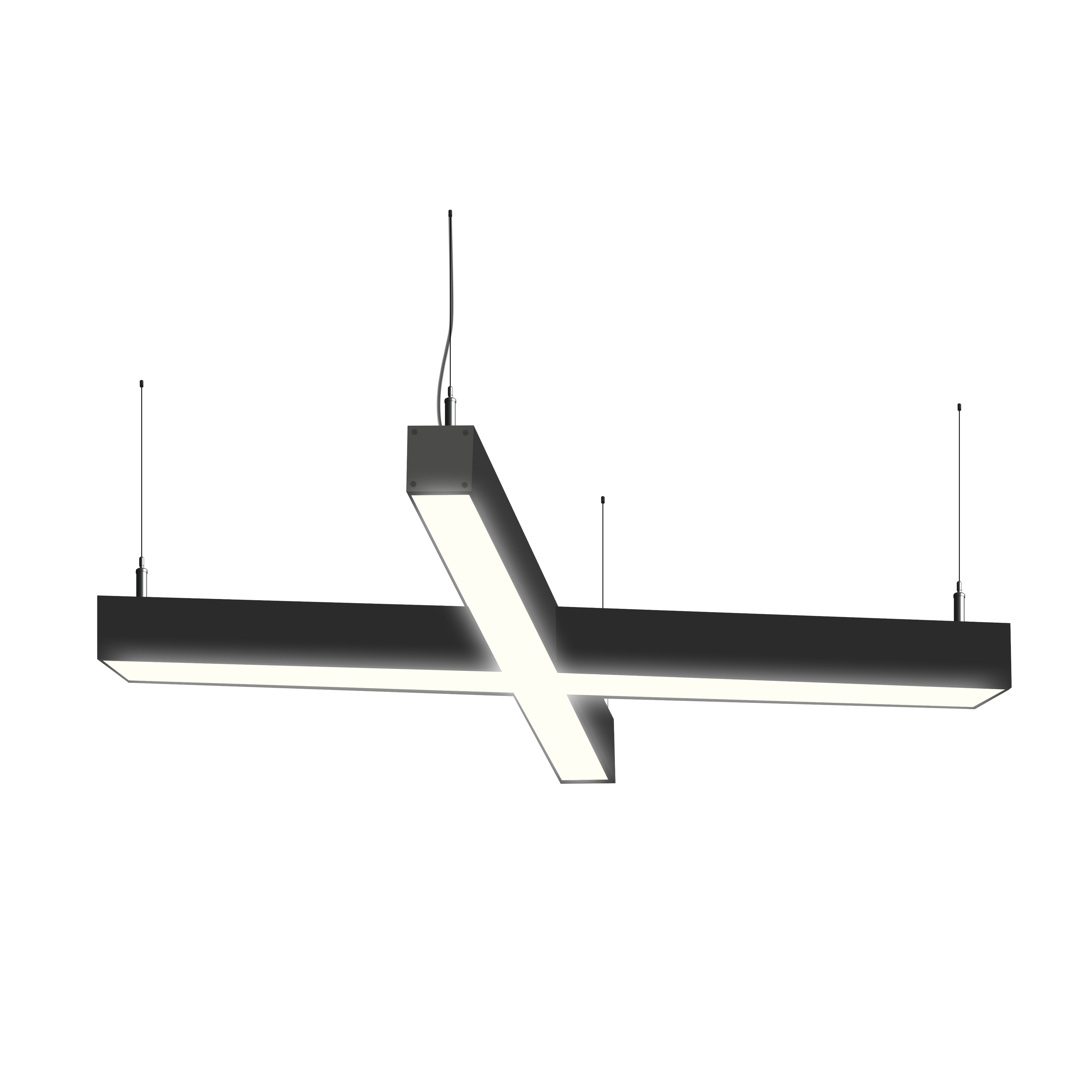 Cветодиодный фигурный светильник MS-CROSS X-образный размер профиля 50x50мм длиной 4х500мм мощностью 80W. Светильник собирается из алюминиевого основния с матовым рассеивателем, который дает равномерную засветку по всей площади.