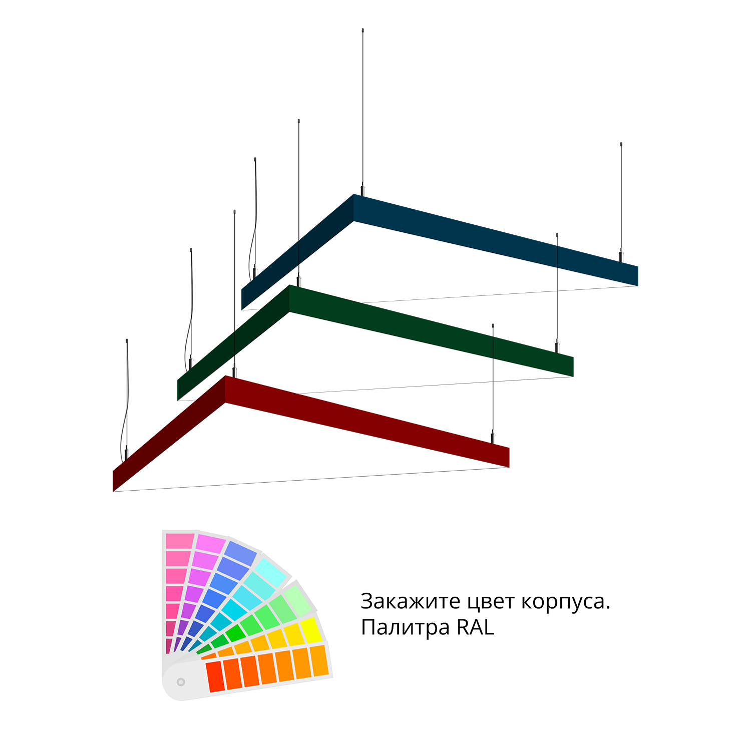 - Светильники доступны в базовых цветах: черный/серый/белый, дополнительно могут быть окрашены в любом цвете палитры RAL (уточняется у менеджера).