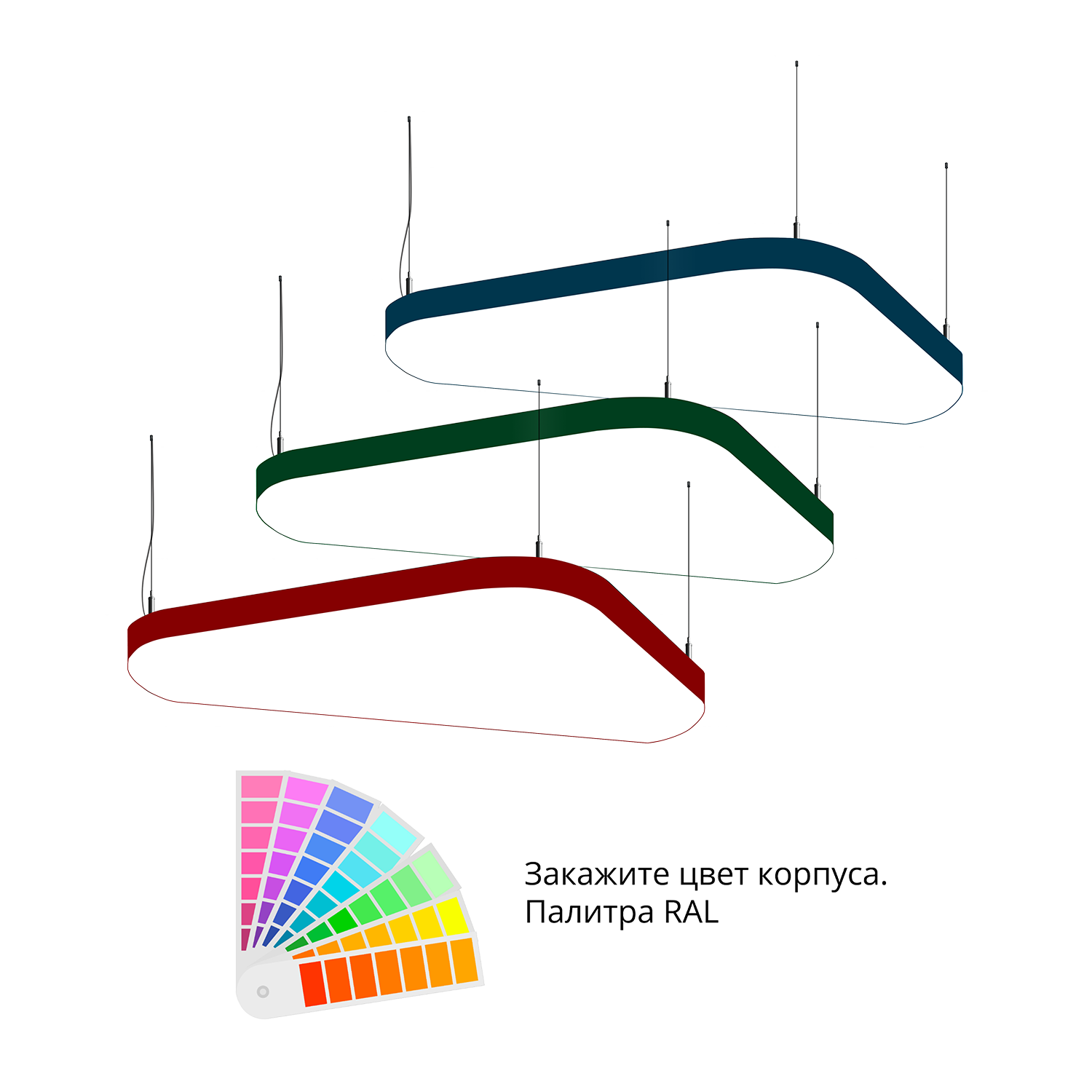 - Светильники доступны в базовых цветах: черный/серый/белый, дополнительно могут быть окрашены в любом цвете палитры RAL (уточняется у менеджера).