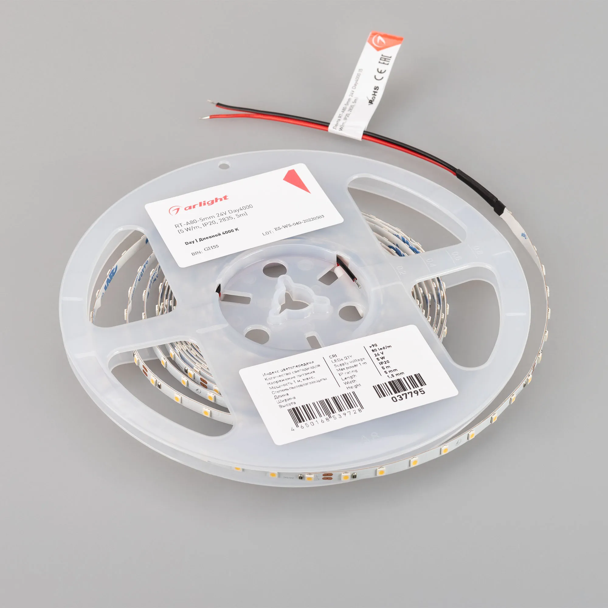 В магазине Арлед Маркет Вы можете купить "Лента светодиодная RT-A80-5mm 24V Day4000 (5 W/m, IP20, 2835, 5m) (Arlight, Открытый)"