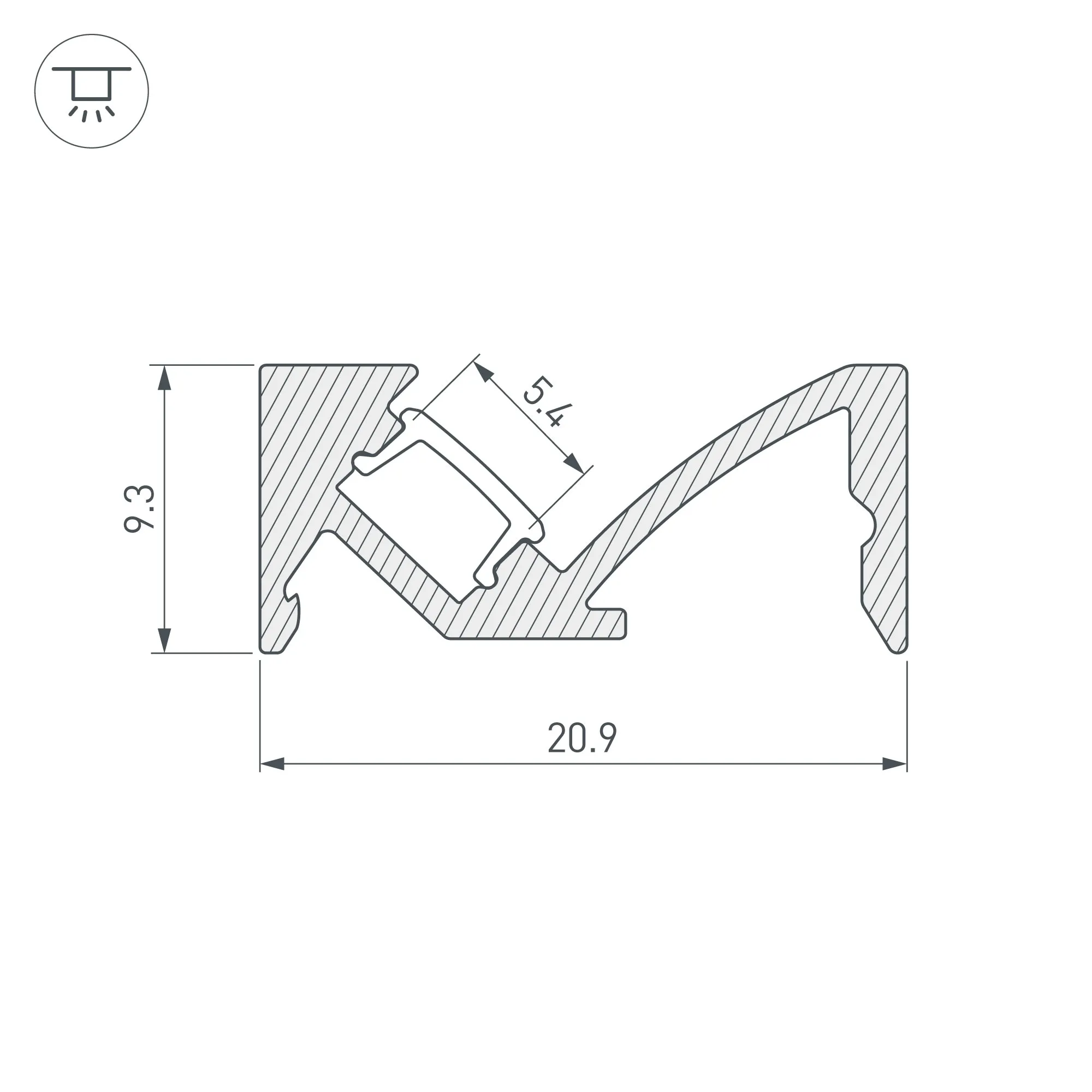 Алюминиевый анодированный накладной профиль для светодиодных лент и линеек с боковым свечением. Габаритные размеры (L×W×H): 2000x20,9x9,3 мм. Ширина площадки для ленты 5,4 мм. Экраны, заглушки и другие аксессуары приобретаются отдельно. Цена за 1 метр.