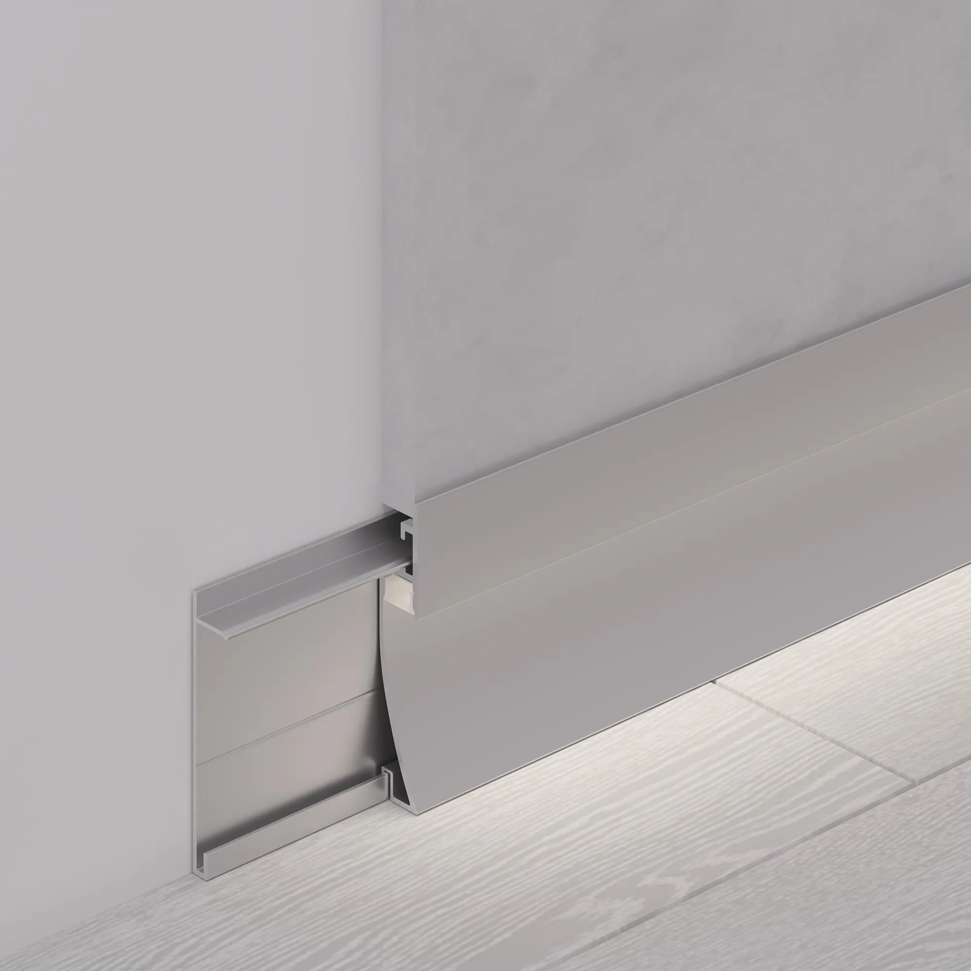 Алюминиевый анодированный встраиваемый двухкомпонентный профиль-плинтус для светодиодных лент и линеек. Габаритные размеры (L×W×H): 2000x12,20x58,30 мм. Ширина площадки для ленты 8 мм. Аксессуары приобретаются отдельно. Цена за метр.