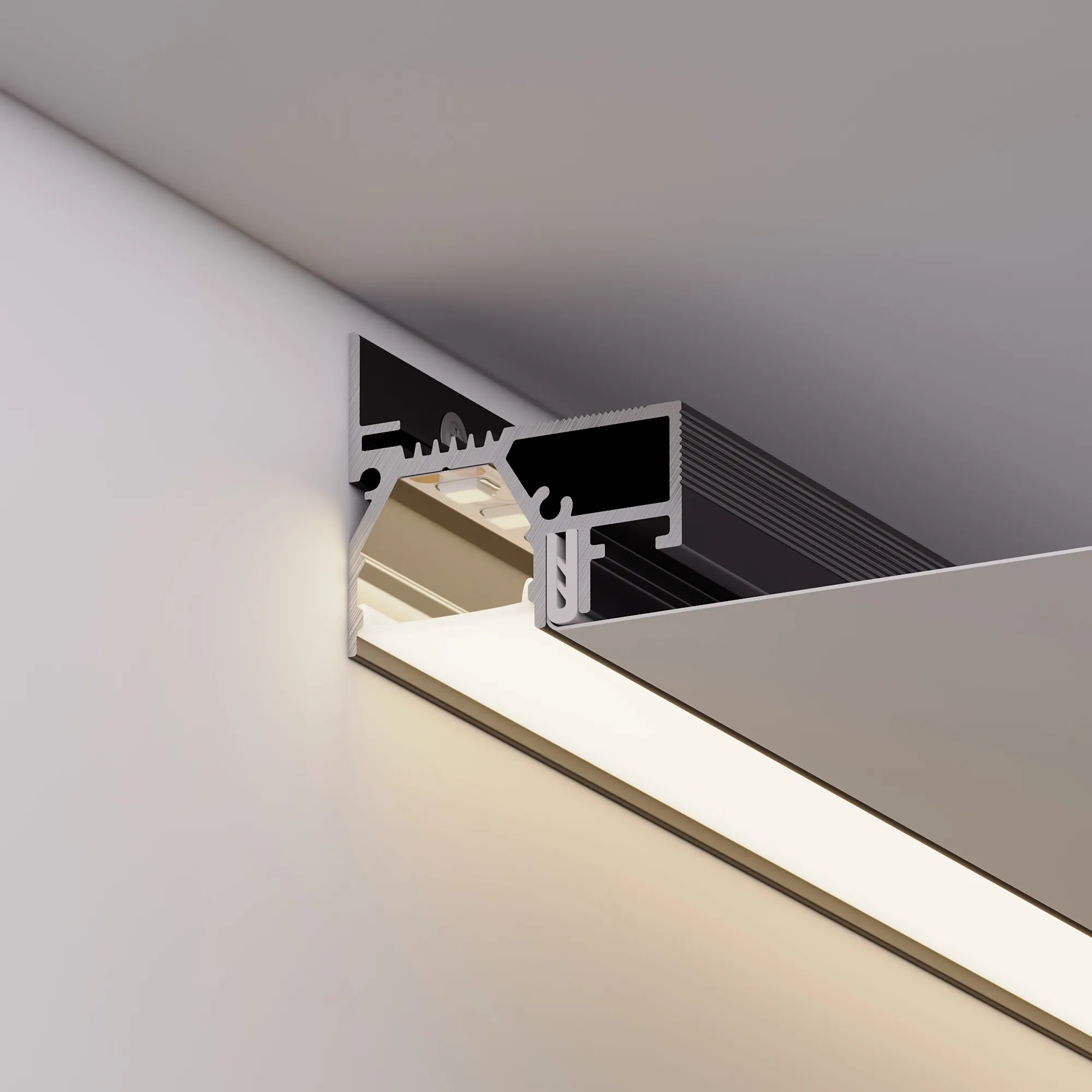Алюминиевый профиль SLOTT for ARLIGHT для монтажа натяжных потолков (контурная подсветка). Самонесущая конструкция для крепления натяжного потолка с пазом для установки светодиодной ленты. Для создания световых линий в натяжных потолках. Возможность установки до 3х лент. Демпферная система крепления натяжного потолка. Цвет - черный RAL9005 (порошковая окраска). Ширина площадки для ленты 11,5 мм. Есть две дополнительные площадки по 10 мм. Длина 2000 мм. Цена за 1 м.