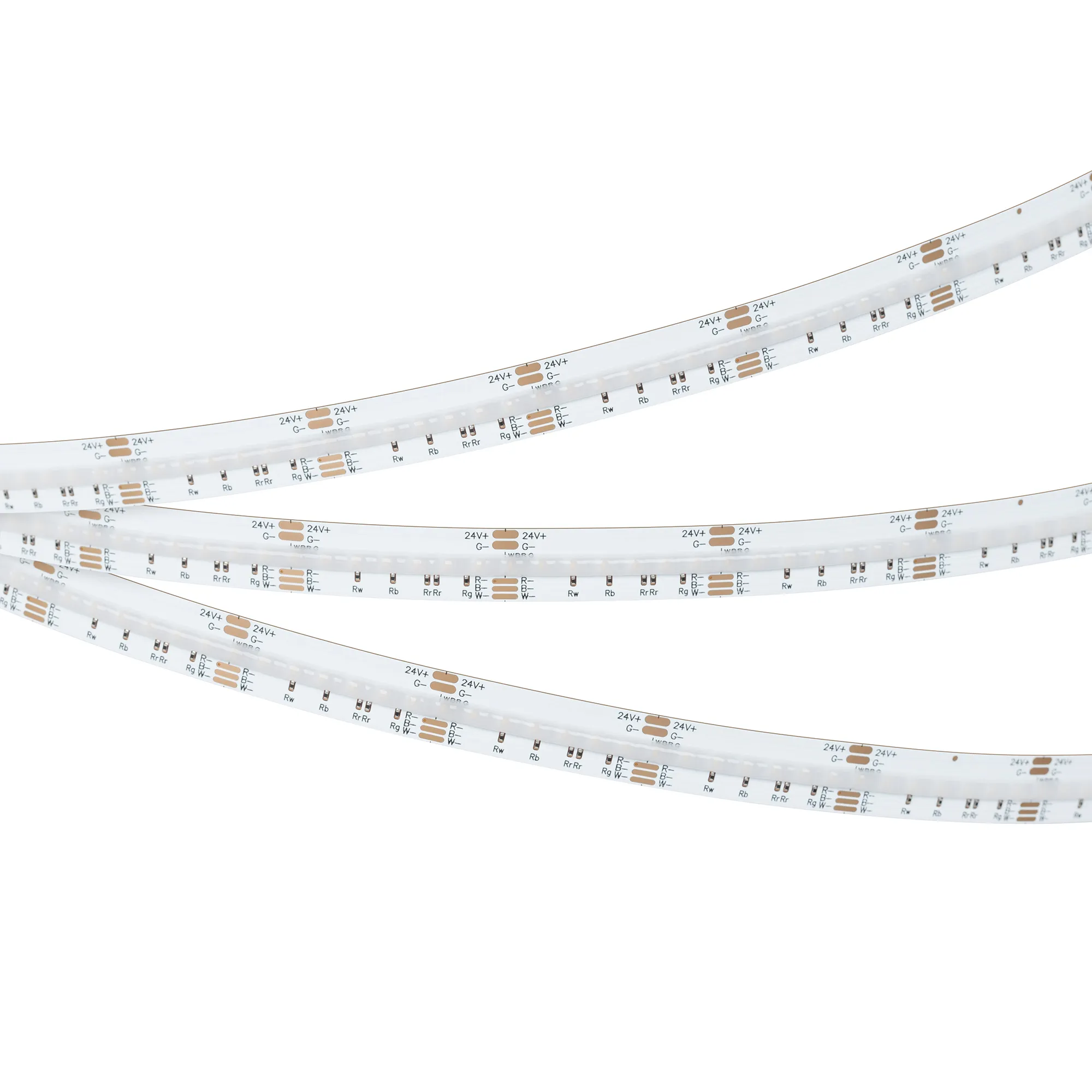 Светодиодная лента сплошного свечения CSP серии X840. Светодиоды CSP, 840 шт/м, белая плата шириной 12 мм, скотч 3M. Цвет RGB + БЕЛЫЙ 6000K, индекс цветопередачи CRI>90, угол 160° Питание 24 В, мощность 17.2 Вт/м (86 Вт на 5 м). Размеры 5000x12x1.9мм. Мин. отрезок 33.33 мм. Цена за 1 м. Обязательна установка на профиль.