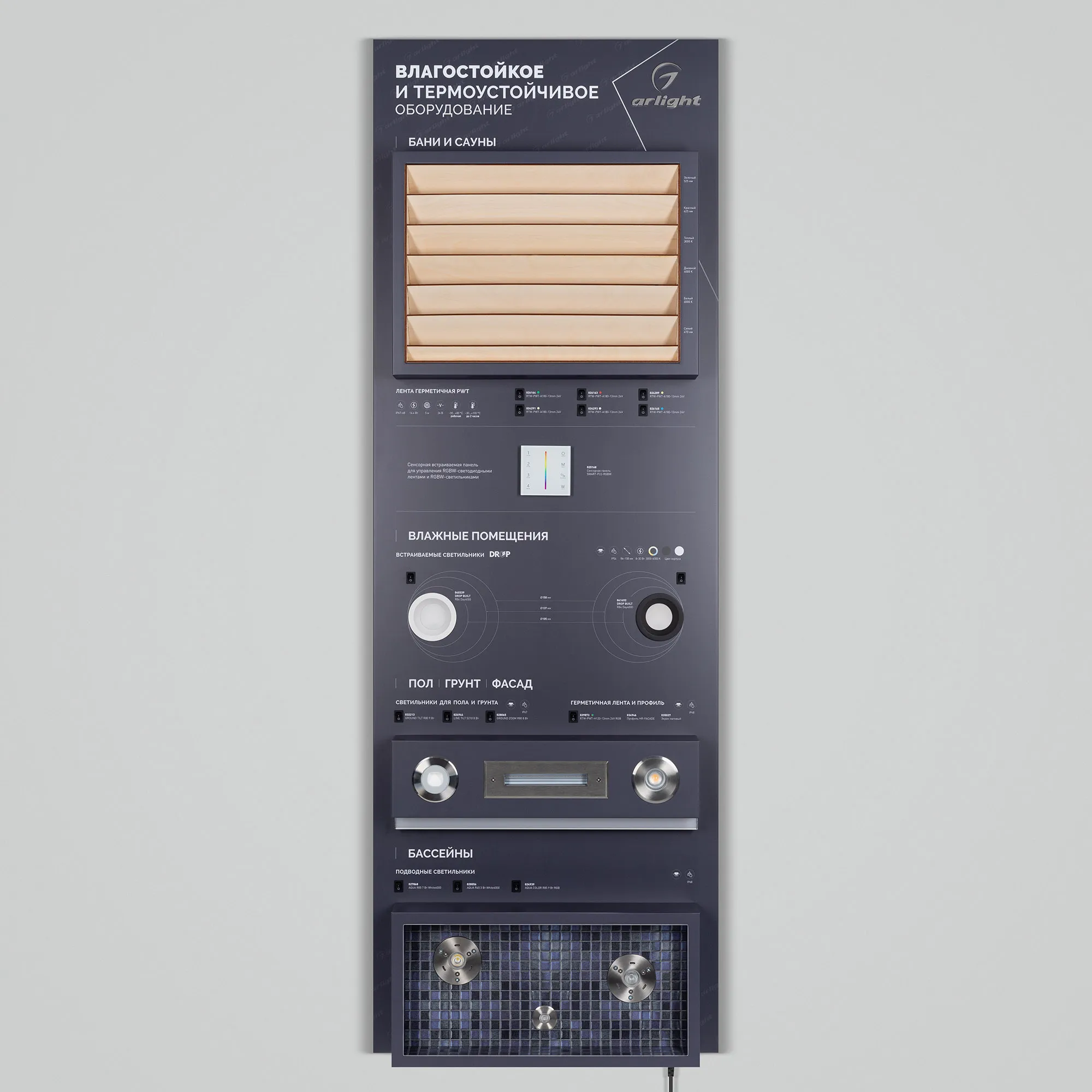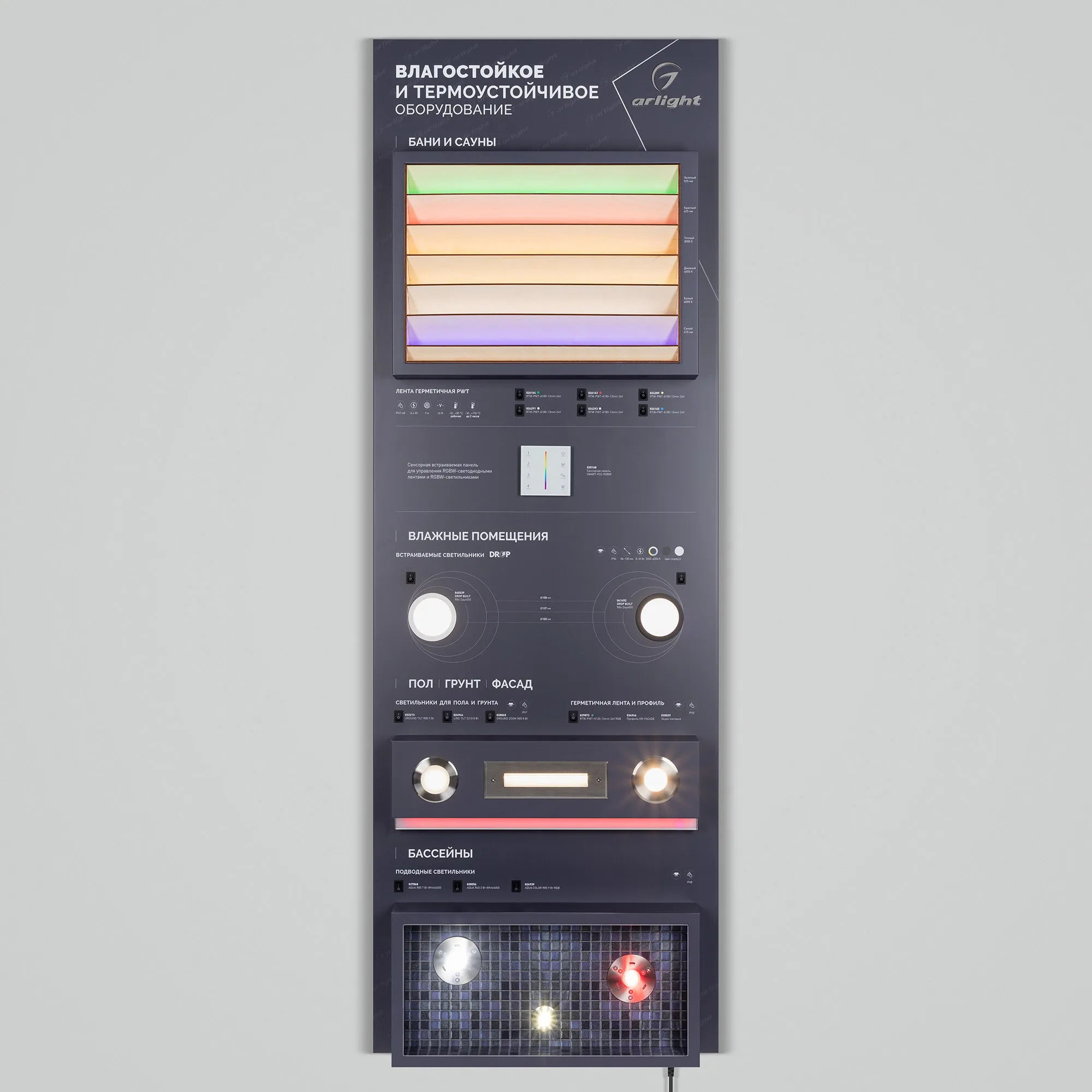 Наши специалисты знают все о продукции Arlight и с радостью помогут Вам выбрать комплектующие к товару "Стенд герметичные решения ARLIGHT-01-1760x600mm (230V) (Arlight, -)", или другие товары из раздела "Решения".