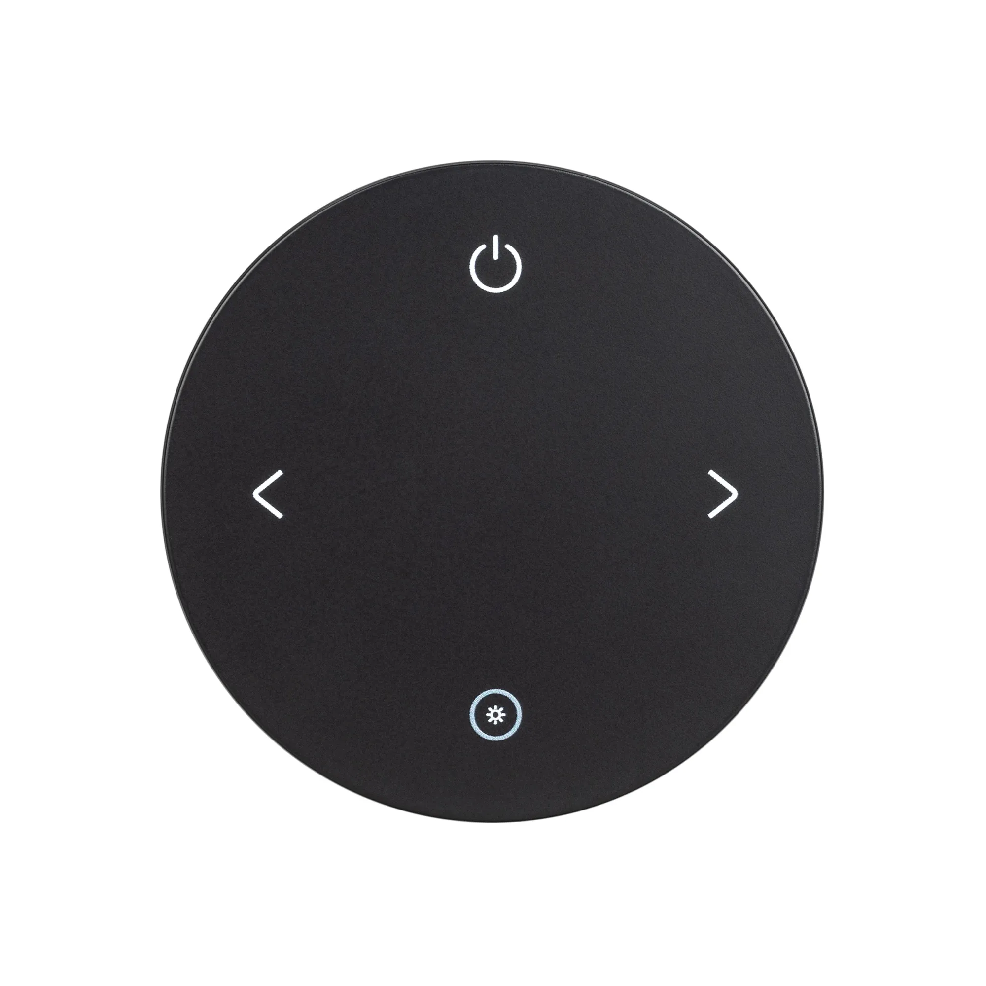 Кнопочный радиопульт 2.4 ГГц чёрного цвета для управления одноцветными (DIM) источниками света. 1 зона управления. Питание 3VDC (CR2032). Габариты 75x75x18 мм. Изготовлен из пластика с покрытием, защищающим от загрязнения. Магнитная основа. Управляет контроллерами и панелями серии SMART (поставляются отдельно).