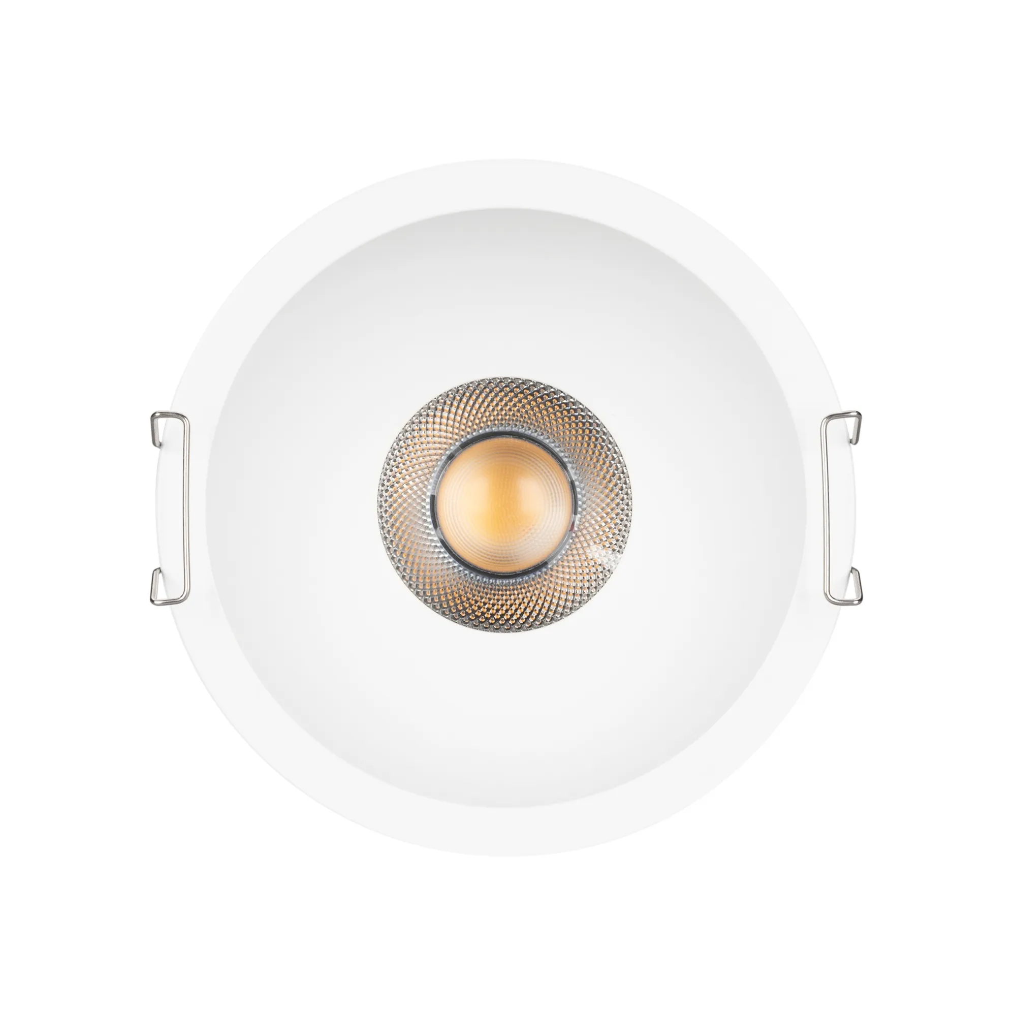 Встраиваемый светильник даунлайт. Мощность 20 Вт, св. поток 1810 лм, 90 лм/Вт, тёплый 3000 K, CRI>90, угол 24°, напряжение питания 230 В. Белый круглый корпус из алюминия, степень защиты IP20. Размер: диаметр 123 мм, высота 68 мм. Монтаж встраиваемый, установочное отверстие: диаметр 110 мм. UGR<14. Драйвер 27-42 В, 500 мА, пульсация <2%.