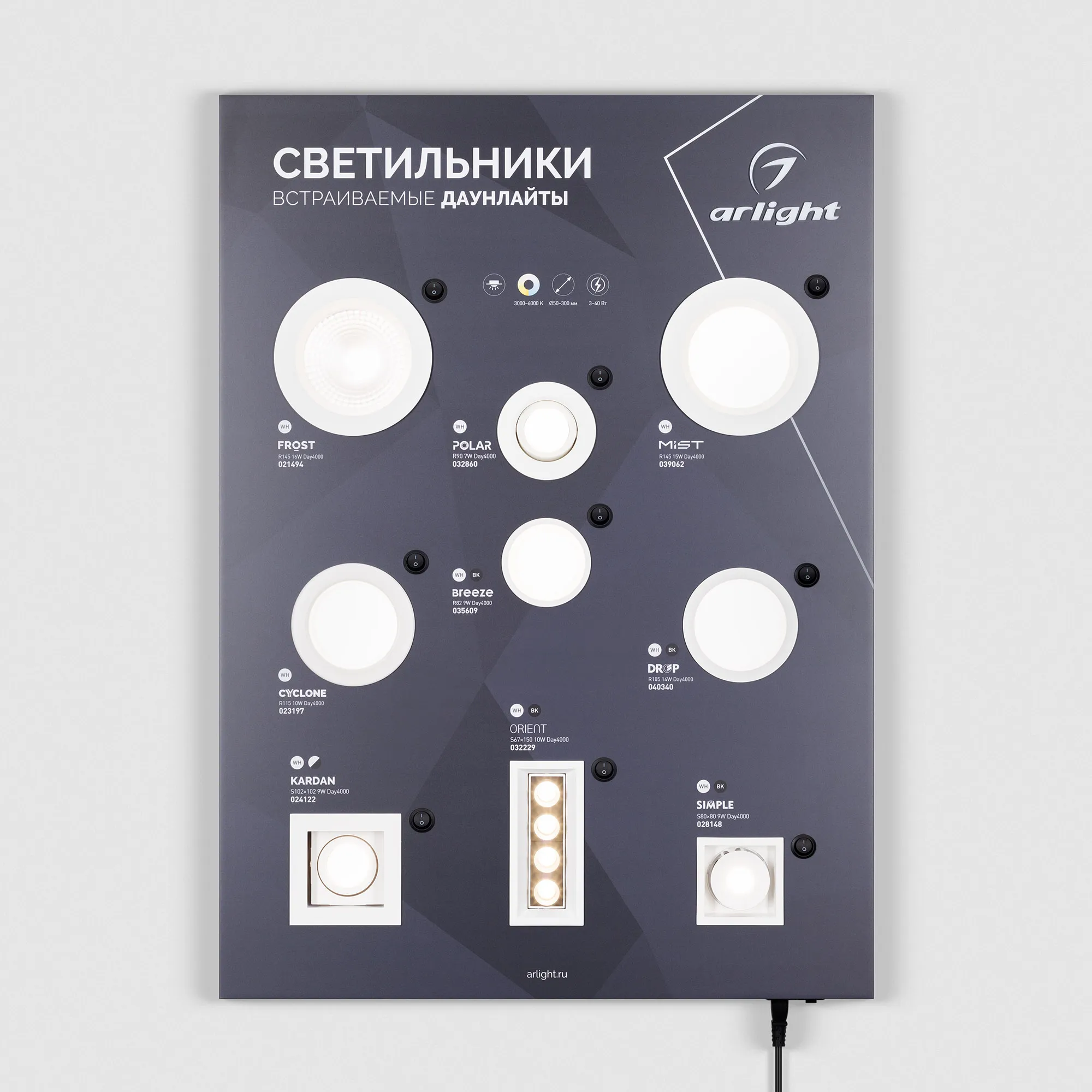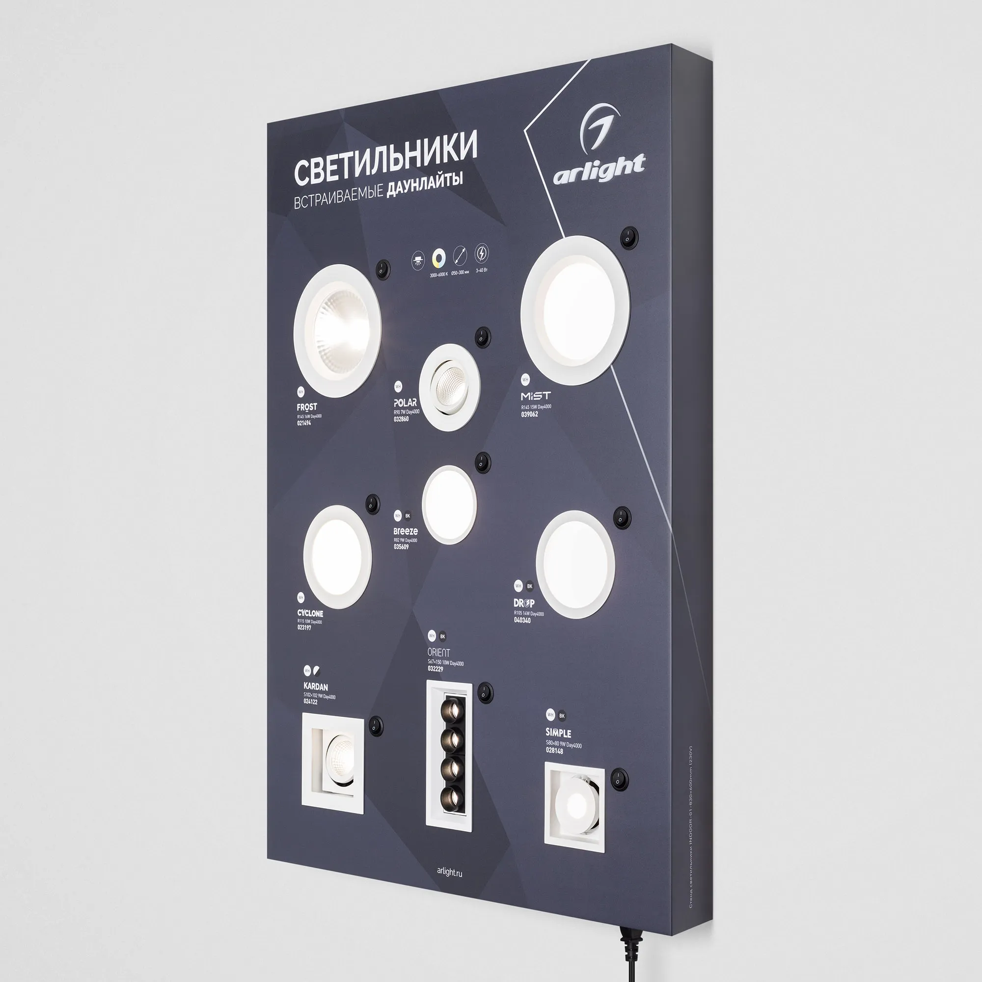 Стенд Светильники INDOOR-01-830х600mm (230V) (Arl…