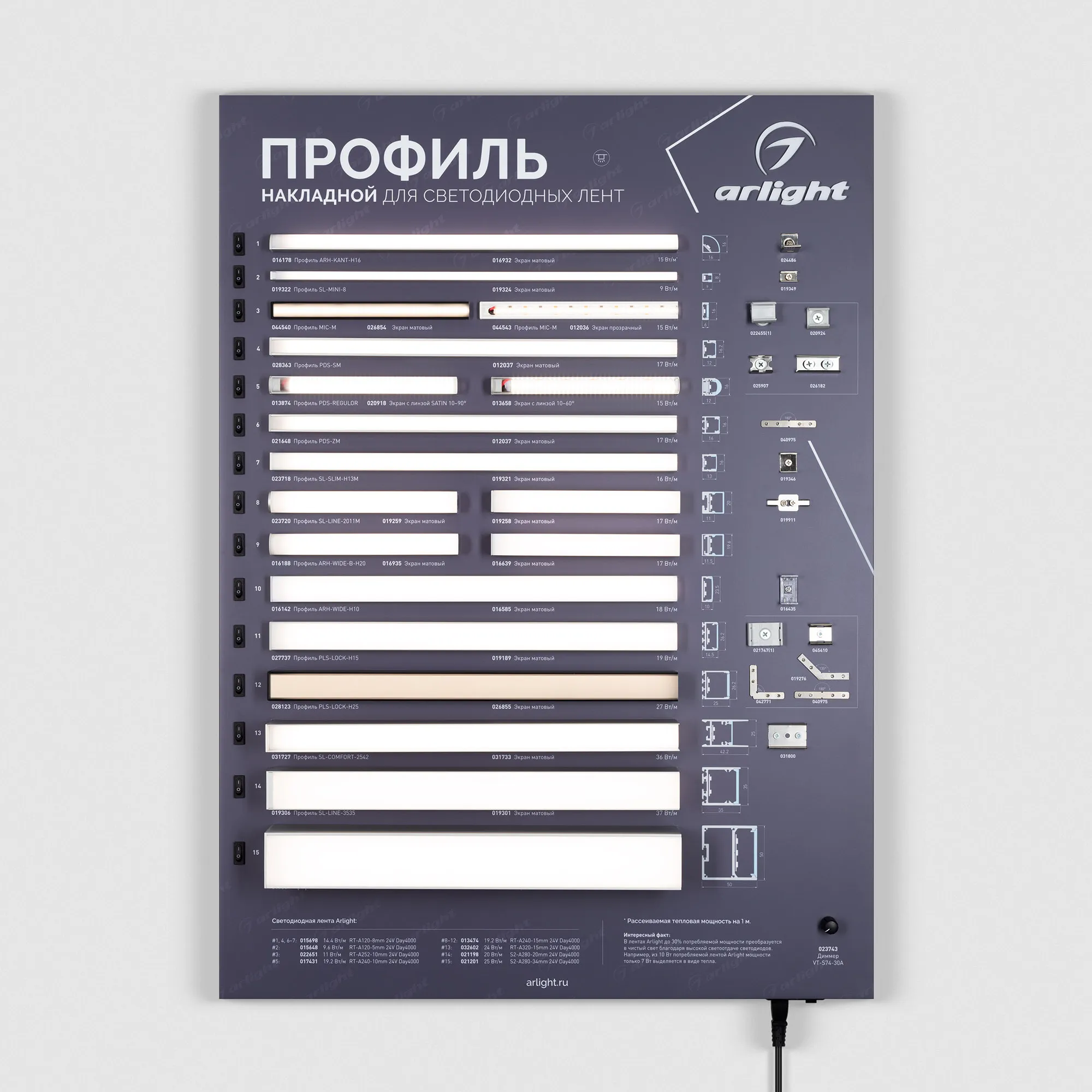Наши специалисты знают все о продукции Arlight и с радостью помогут Вам выбрать комплектующие к товару "Стенд Профиль накладной ARL-04-830x600mm (230V) (Arlight, -)", или другие товары из раздела "Алюминиевые профили SL".