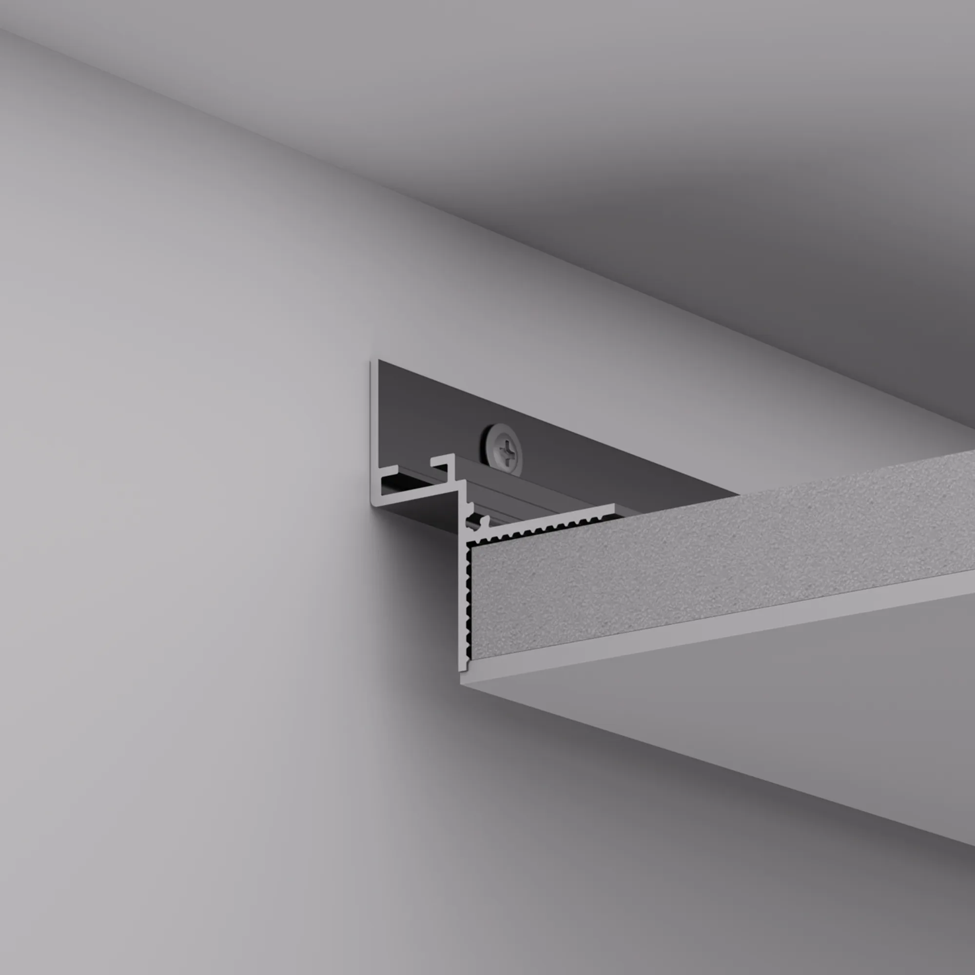 Алюминиевый анодированный встраиваемый профиль. Цвет - черный. Теневой несветовой профиль для создания зазора 12,2 мм между поверхностью потолка и стены. Создает эффект парящего потолка с четким контуром и небольшой тенью по периметру помещения. Такое решение визуально расширяет пространство и идеально подходит для современного минималистичного интерьера. Габаритные размеры (L×W×H): 3000х36,5х33,5 мм. Аксессуары приобретаются отдельно. Цена за 1 метр.