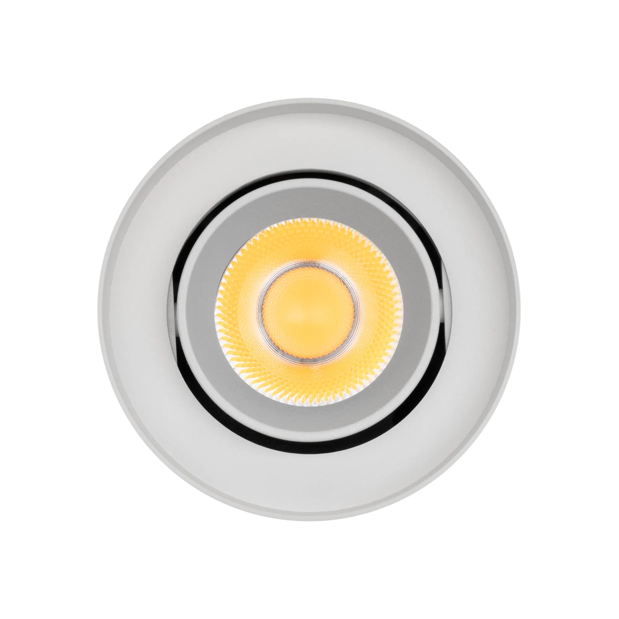 Накладной интерьерный светильник. Мощность 10 Вт, св. поток 970 лм, 93 лм/Вт, теплый 3000 K, CRI>90, угол 24°, регулируемое направление луча 40° (20+20), поворотный световой модуль вокруг своей оси на 340°, UGR <18, напряжение питания 230 В. Белый круглый корпус из алюминия, степень защиты IP54. Размер: диаметр 86,5 мм, высота 120 мм. Монтаж накладной. Драйвер 27-43 В, 250 мА, пульсация <1%.