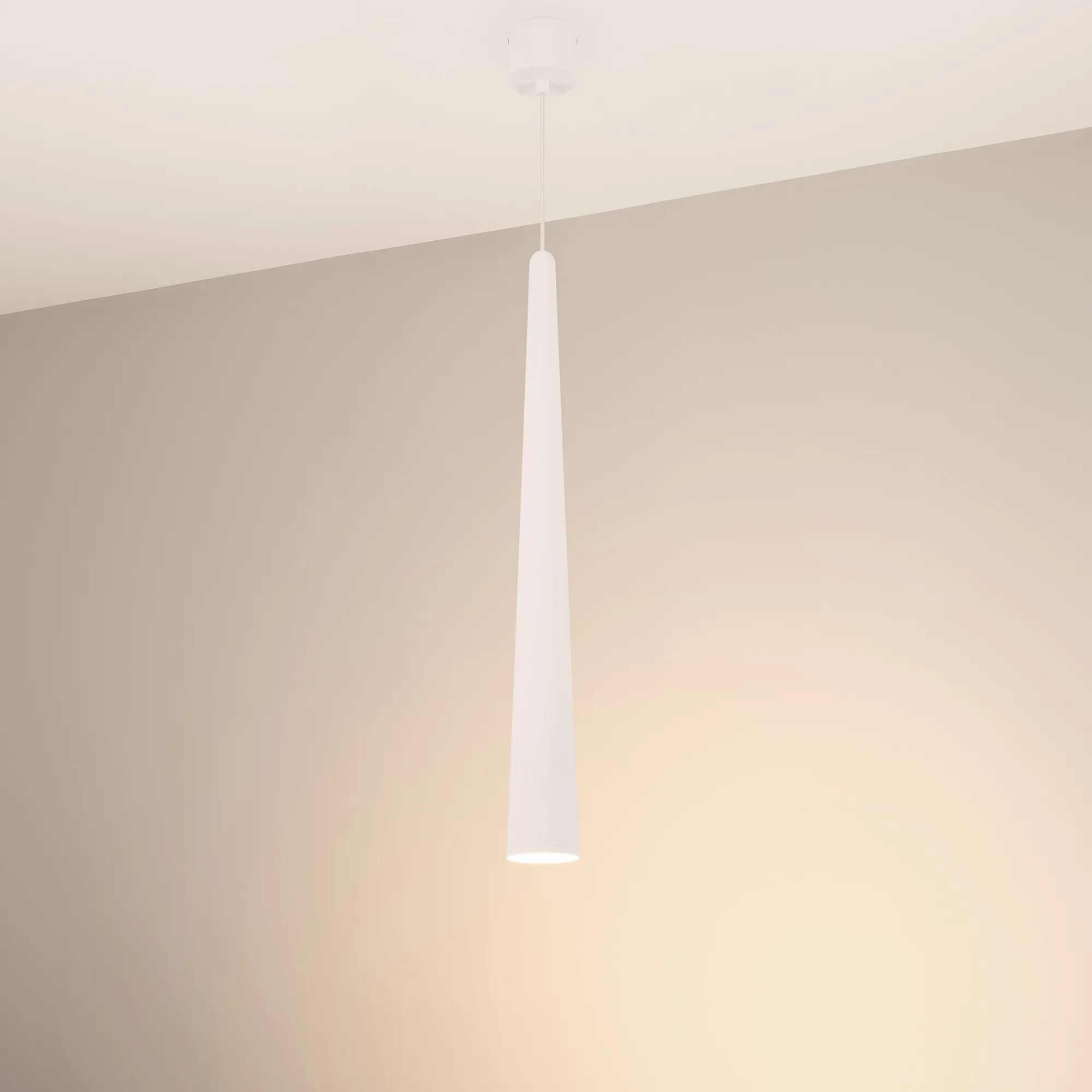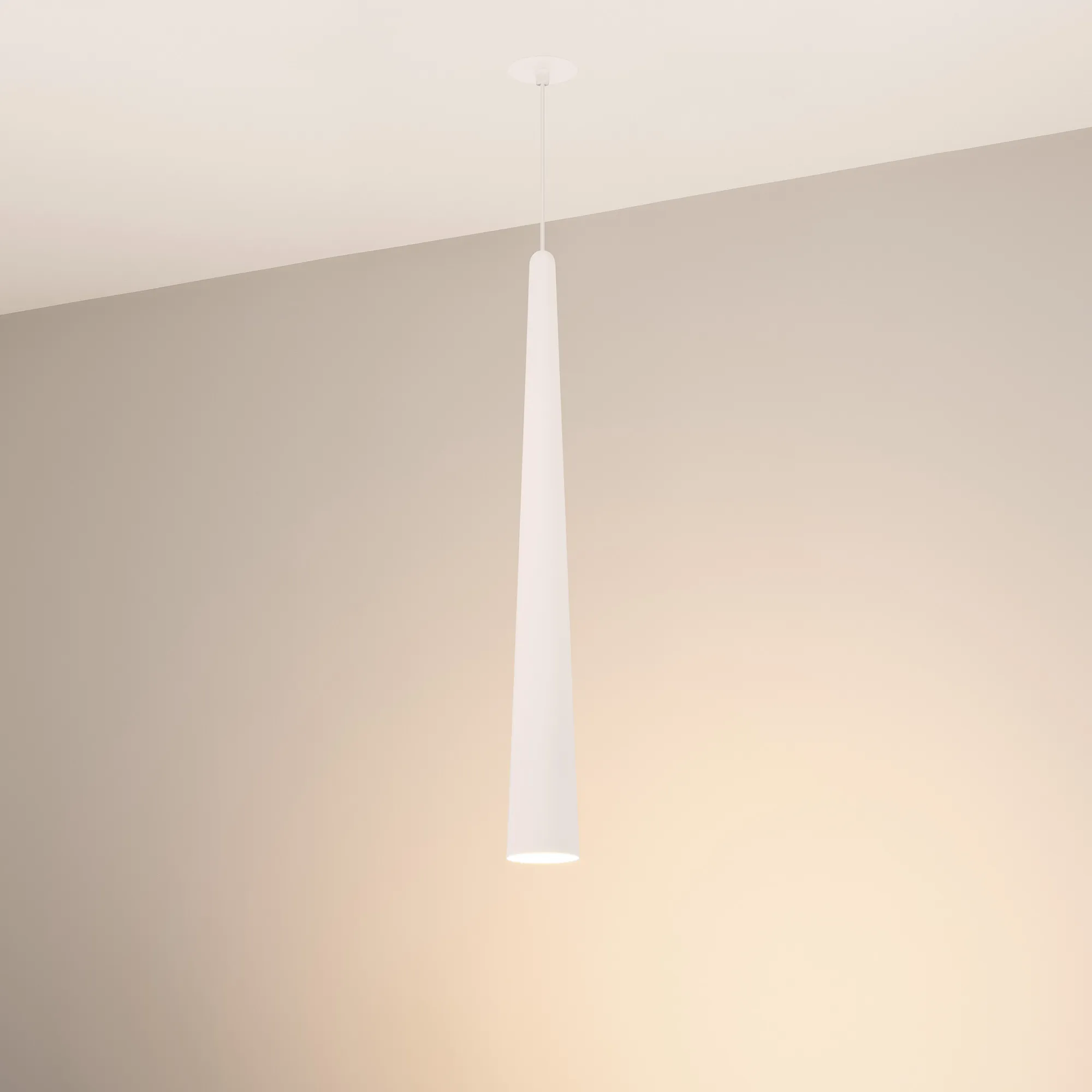 Подвесной светильник. Мощность 5 Вт, св. поток 400 лм, 70 лм/Вт, теплый 3000K, CRI>92, угол 36°, напряжение питания 230 В. Белый конусообразный вытянутый корпус из алюминия, линза из PMMA, степень защиты IP20. Размер: диаметр 76 мм, высота 670 мм. Монтаж подвесной, длина подвеса 2000 мм, регулируемая. В комплекте 2 вида чаш. Габариты встраиваемой чаши: Ø 80x41 мм. Габариты накладной чаши Ø80x60 мм. Драйвер 2,8-12В, 500 мА, пульсация <1%.