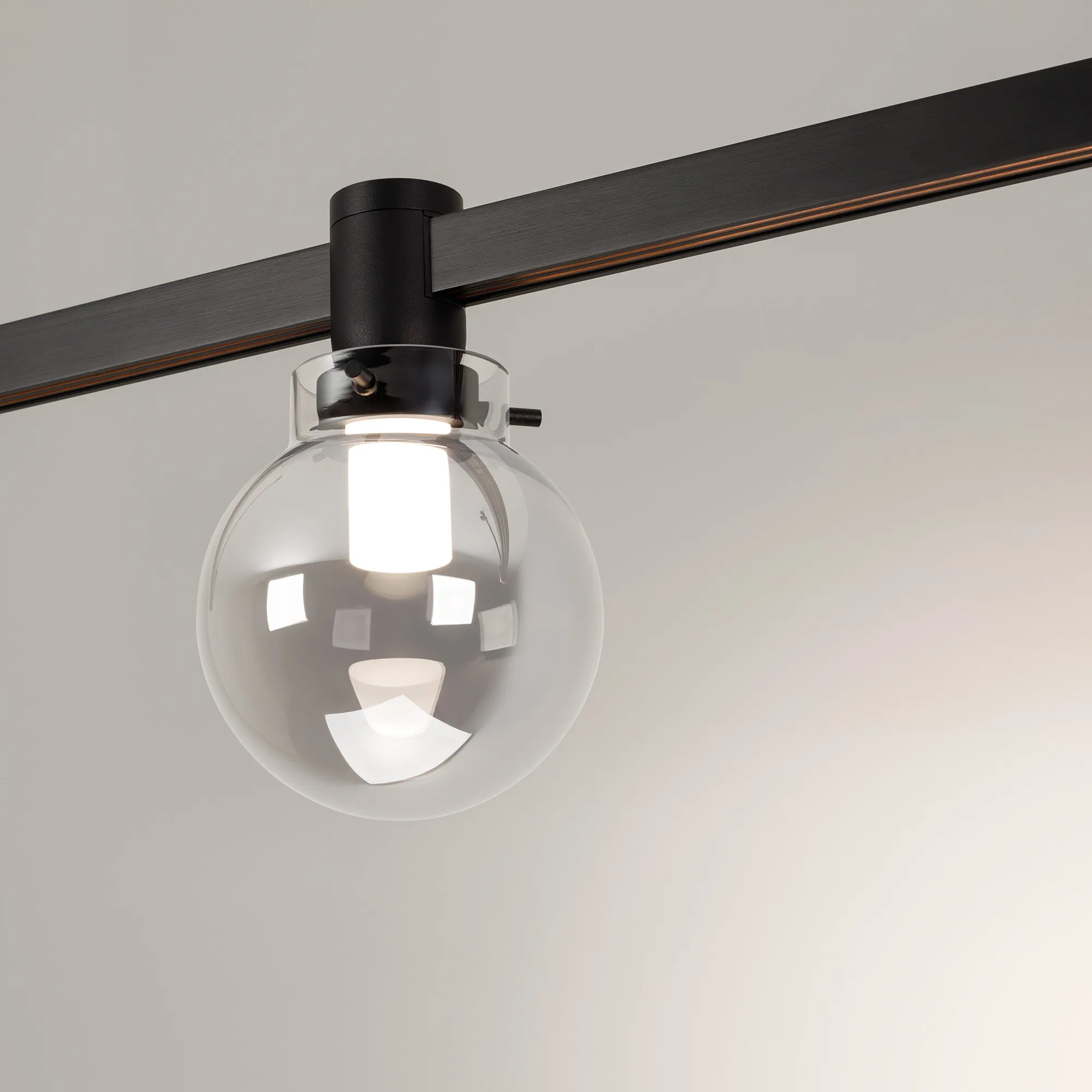 Светильник для треков APRIORI шириной 17 мм. Мощность 5 Вт, св. поток 309 лм, 62 лм/Вт, дневной 4000 K, CRI>92, угол 85°, напряжение питания 48 В. Черный круглый корпус из алюминия, экран прозрачное стекло, степень защиты IP20. Размер: диаметр 110 мм, высота 170 мм. Монтаж на трек APRIORI 17 мм. Пульсация <1%. Возможно диммирование по ШИМ (PWM) или не адресное управление при использовании диммируемого драйвера Dali, 0-10V, TRIAC.