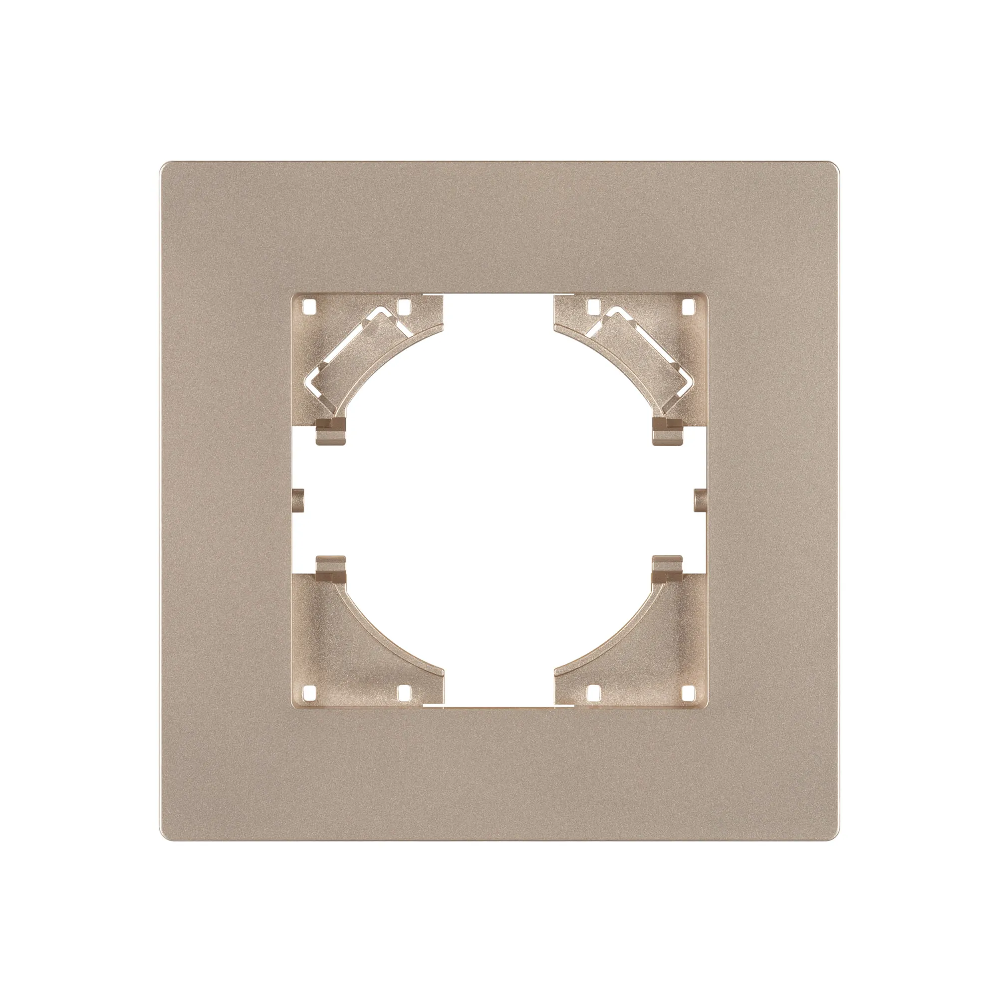 Рамка пластиковая на 1 пост, под встраиваемый механизм. Цвет - золотой. Уровень герметичности IP20. Ориентация монтажа - горизонтальная (основным ориентиром служат посадочные выступы для накладки механизма).