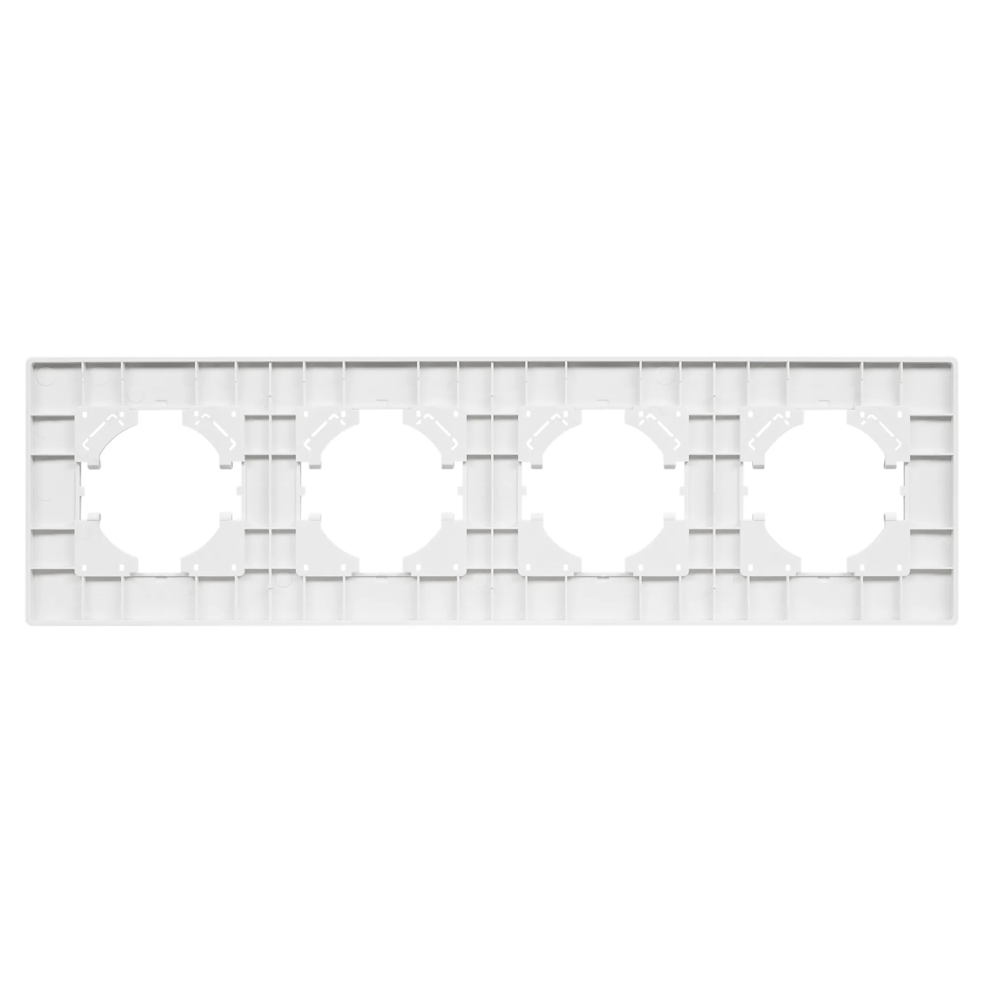 Рамка пластиковая на 4 поста, под встраиваемый механизм. Цвет - черный. Уровень герметичности IP20. Ориентация монтажа - горизонтальная (основным ориентиром служат посадочные выступы для накладки механизма).