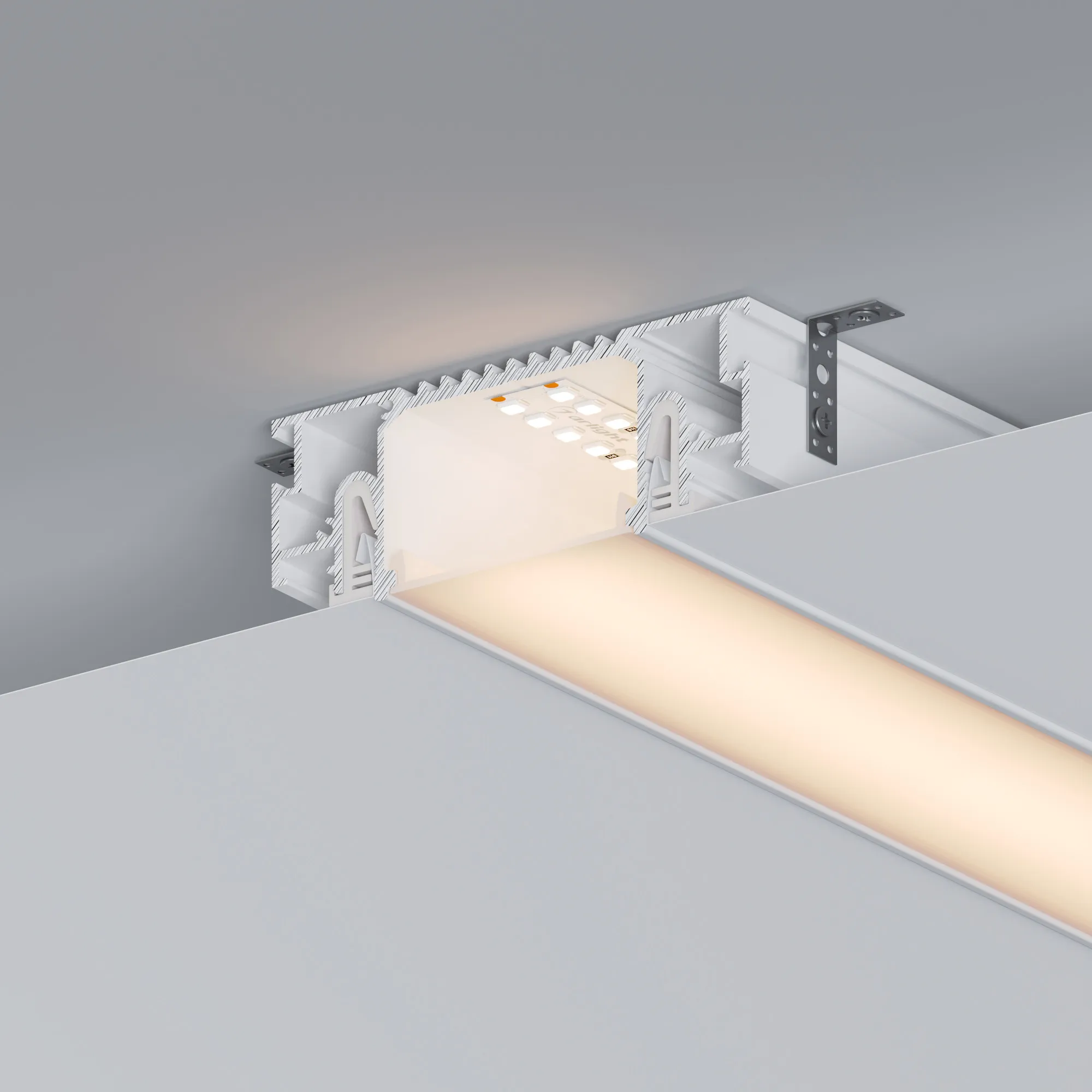 Алюминиевый профиль белого цвета для натяжных потолков (центральная линия). Решение 2-в-1 - каркас для крепления натяжного потолка и профиль для установки светодиодной ленты. Для дизайнерских решений «линии света» в натяжных потолках. Подходит для тканевых и ПВХ потолков.Монтируется к потолку накладным способом. Ширина площадки для ленты 38,3 мм. Длина 2000 мм. Цена за 1 м.