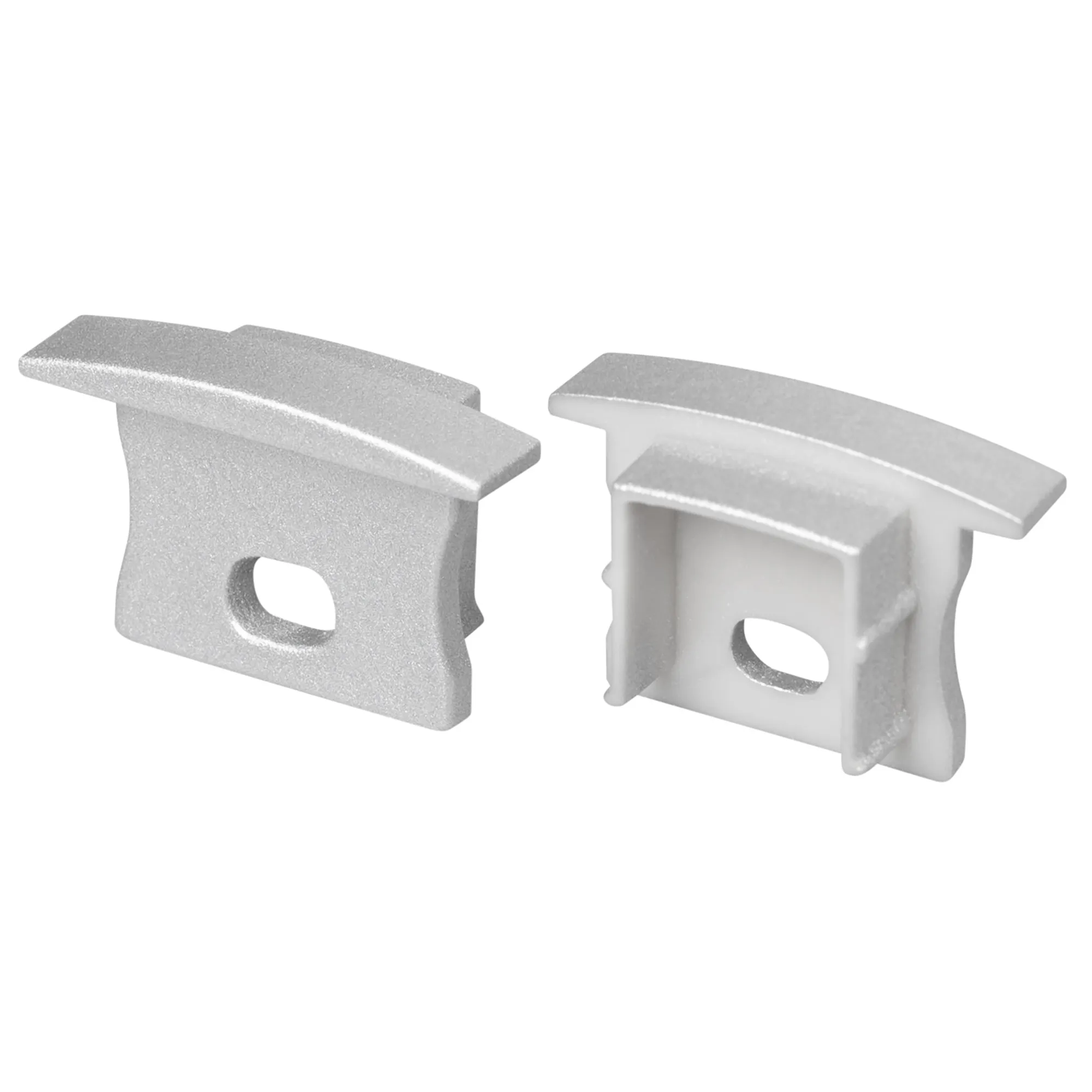 Пара заглушек для профиля LINE-2315-F. Цвет - серебристый. Материал - пластик. В комплекте 2 заглушки с отверстиями. Цена за комплект.