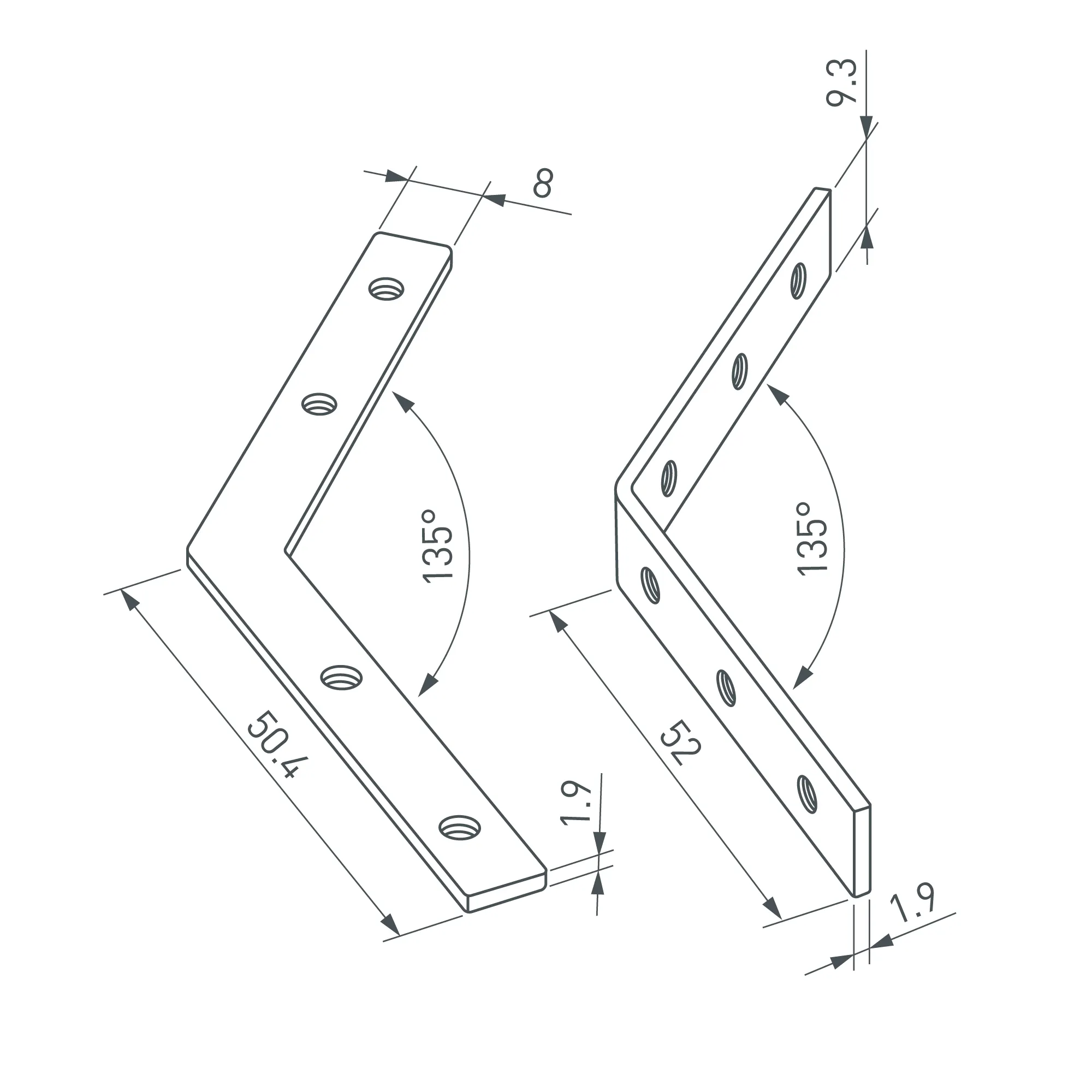Угловой коннектор (угол к плоскости) для соединения 2-х отрезков профиля LINE-6070 под углом 135°. Устанавливается в паз. В комплекте: соединитель внутренний - 2 шт., соединитель внешний - 2 шт., винт - 20 шт., шестигранный ключ - 1 шт. Цена за 1 комплект.