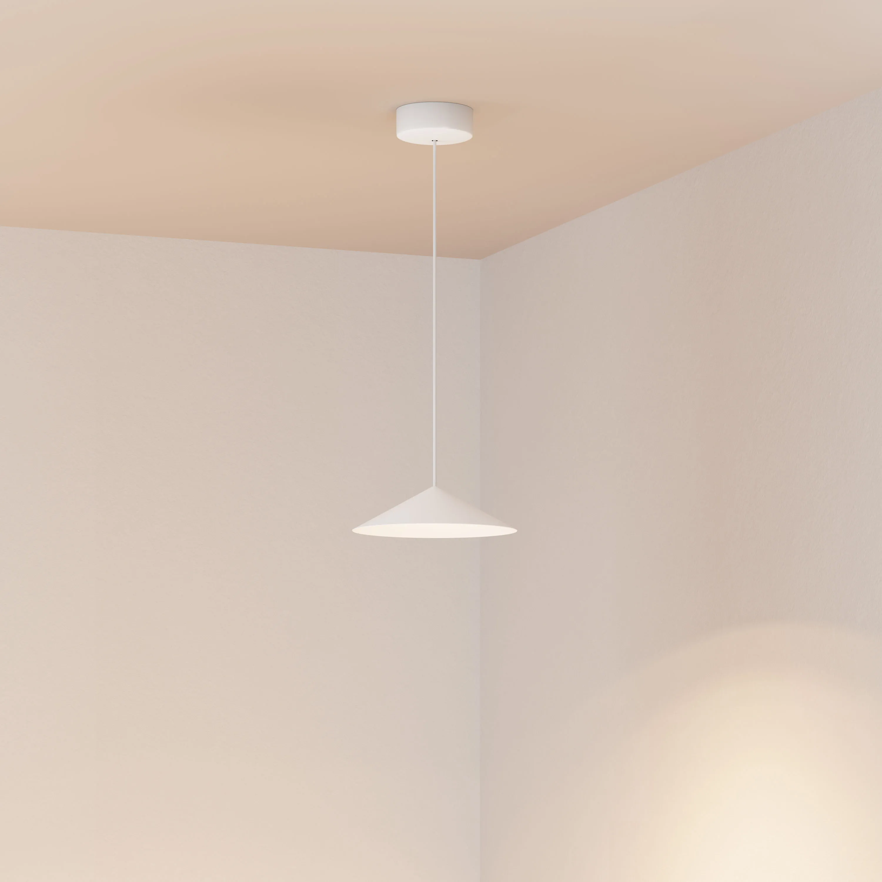 Подвесной светильник. Мощность 10 Вт, св. поток 700 лм, 70лм/Вт, теплый 3000 K, CRI>94, угол 36°, напряжение питания 230 В. Белый корпус из алюминия в форме конуса с белой внутренней поверхностью, линза-рассеиватель из PMMA, степень защиты IP20. Размер: диаметр 300 мм, высота 80 мм. Монтаж подвесной, длина подвеса 2000 мм, регулируемая. В комплекте две чаши. Габариты чаши (встроенной) Ø80 х 41 мм, врезное отверстие Ø55 мм, габариты чаши (накладной) Ø110 х 25 мм. Драйвер 2,8-12В, 500мА, пульсация <1%. Управление по TRIAC.