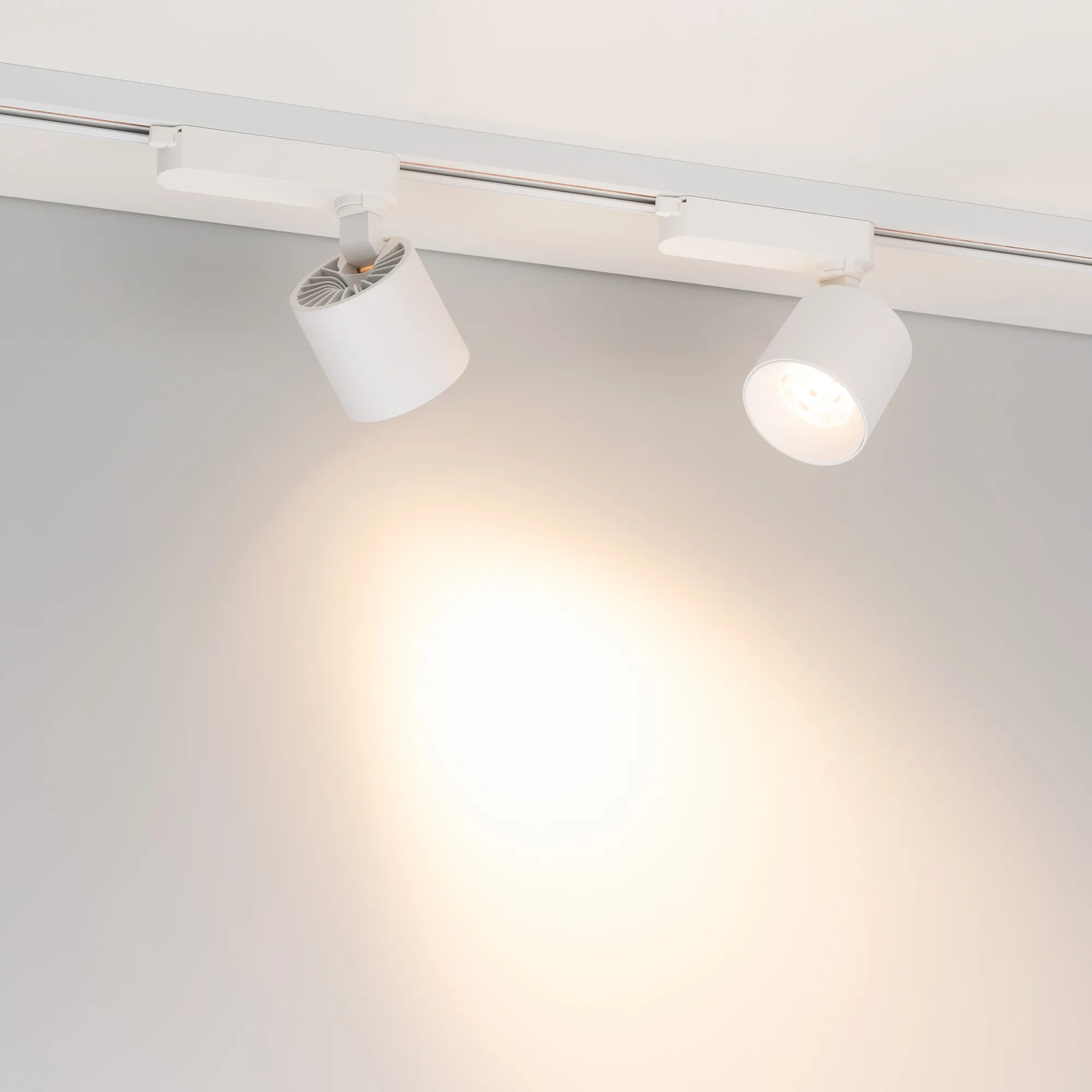 Светильник для однофазных треков, 16 Вт. Цвет свечения ТЁПЛЫЙ 3000K, световой поток 1750 лм, угол 20°, CRI>90. Корпус круглый, металл, цвет белый, IP20. Размеры Ø74x69,6 мм. Монтаж на трек 1-фазный. Входное напряжение AC220-240V, мощность 20 Вт. Драйвер встроенный (25-40V, 500 mA).Пульсация <1%.