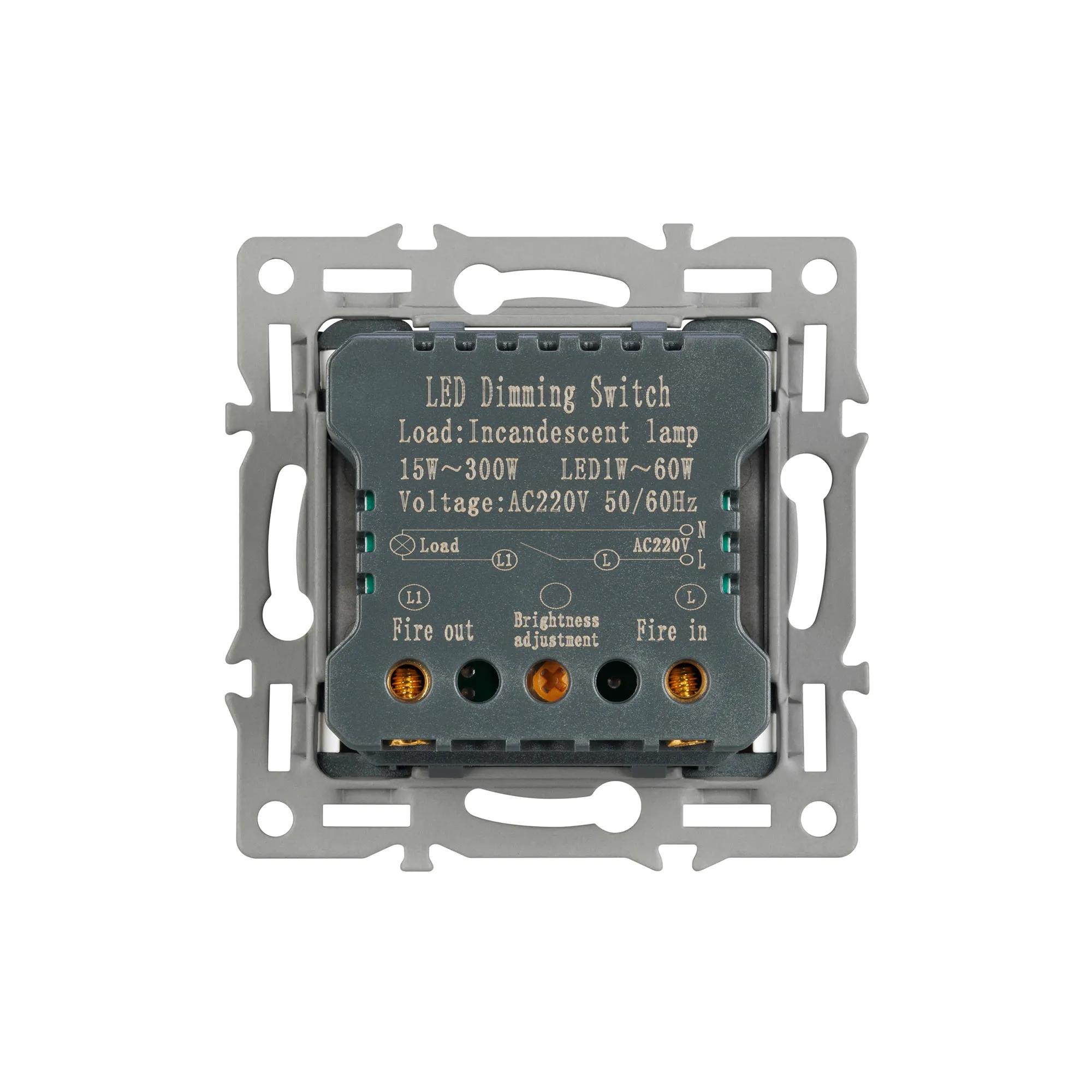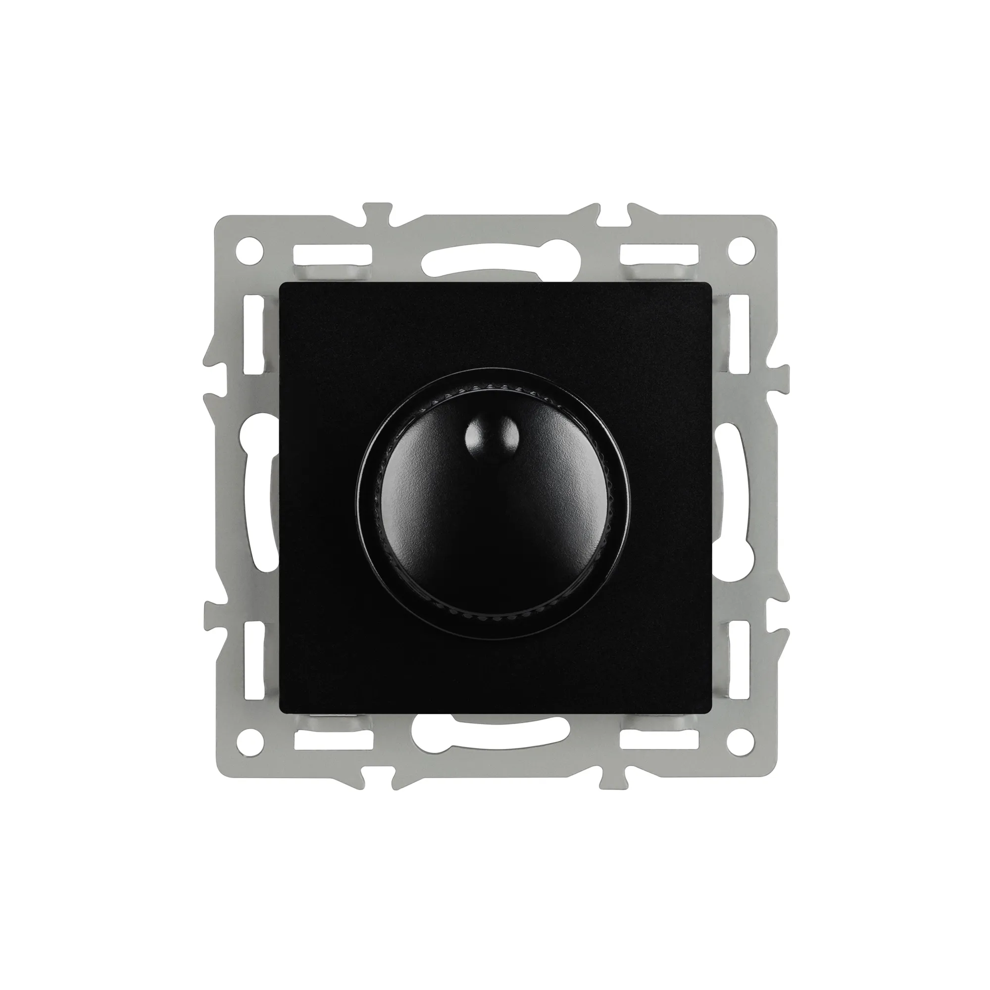 Механизм регулировки света на 1 пост, с суппортом из алюминия. Цвет - черный. Без фронтальной рамки. Уровень пылевлагозащиты - IP20. Механизм устанавливается в стандартный круглый подрозетник. Максимальная нагрузка 300 Вт только для ламп накаливания и галогенных, 100 Вт только для энергосберегающих и светодиодных ламп.