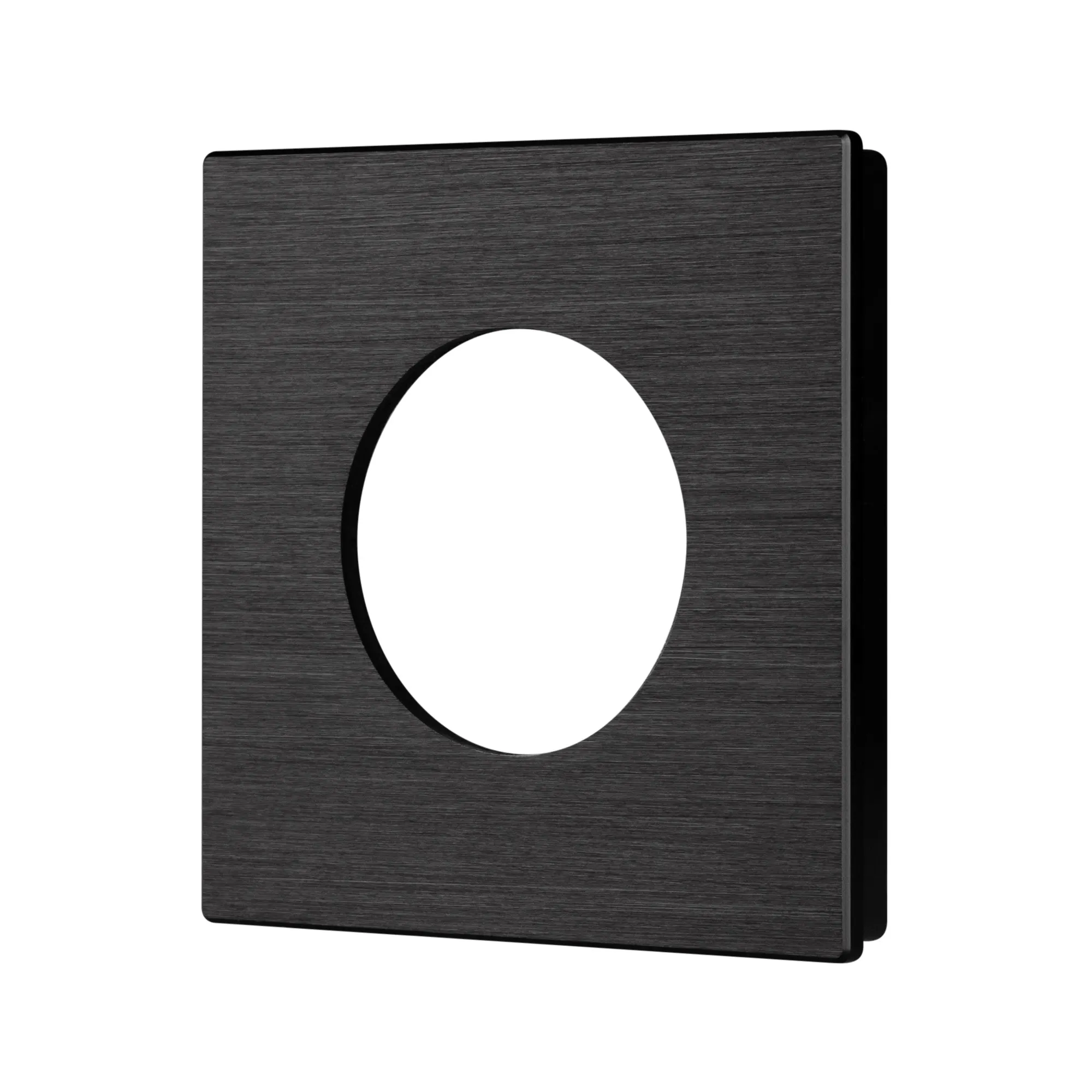 Рамка алюминиевая на 1 пост, под встраиваемый механизм. Вырез под функциональную часть - круг. Цвет - черный. Ориентации монтажа - горизонтальная и вертикальная.