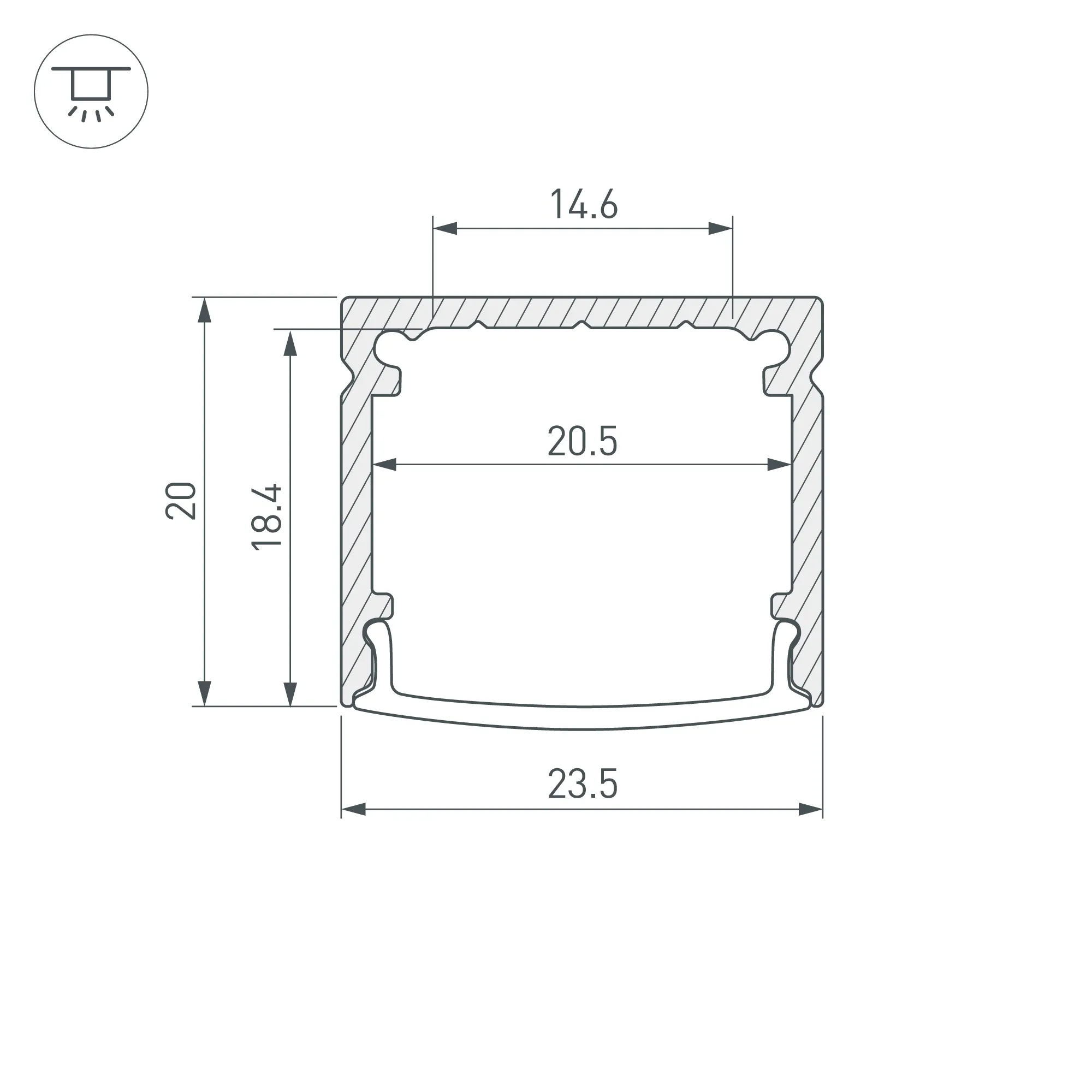 Накладной алюминиевый профиль для светодиодных лент и линеек. Габаритные размеры (L×W×H): 2000x23,5x20 мм. Ширина площадки для ленты 14,6 мм. Экраны, заглушки и другие аксессуары приобретаются отдельно. Цена за 1 метр.