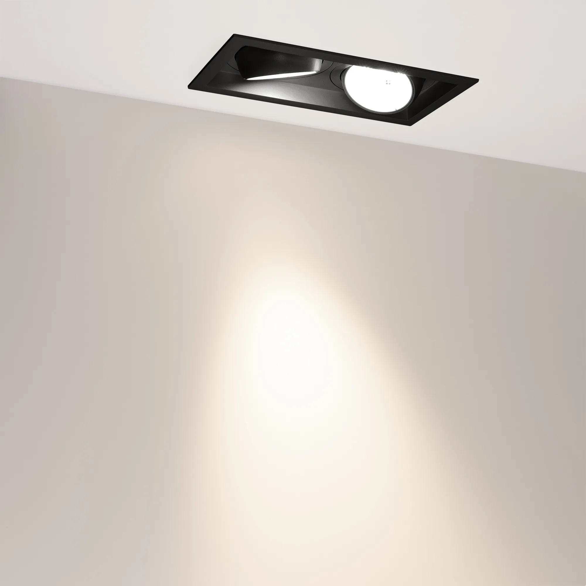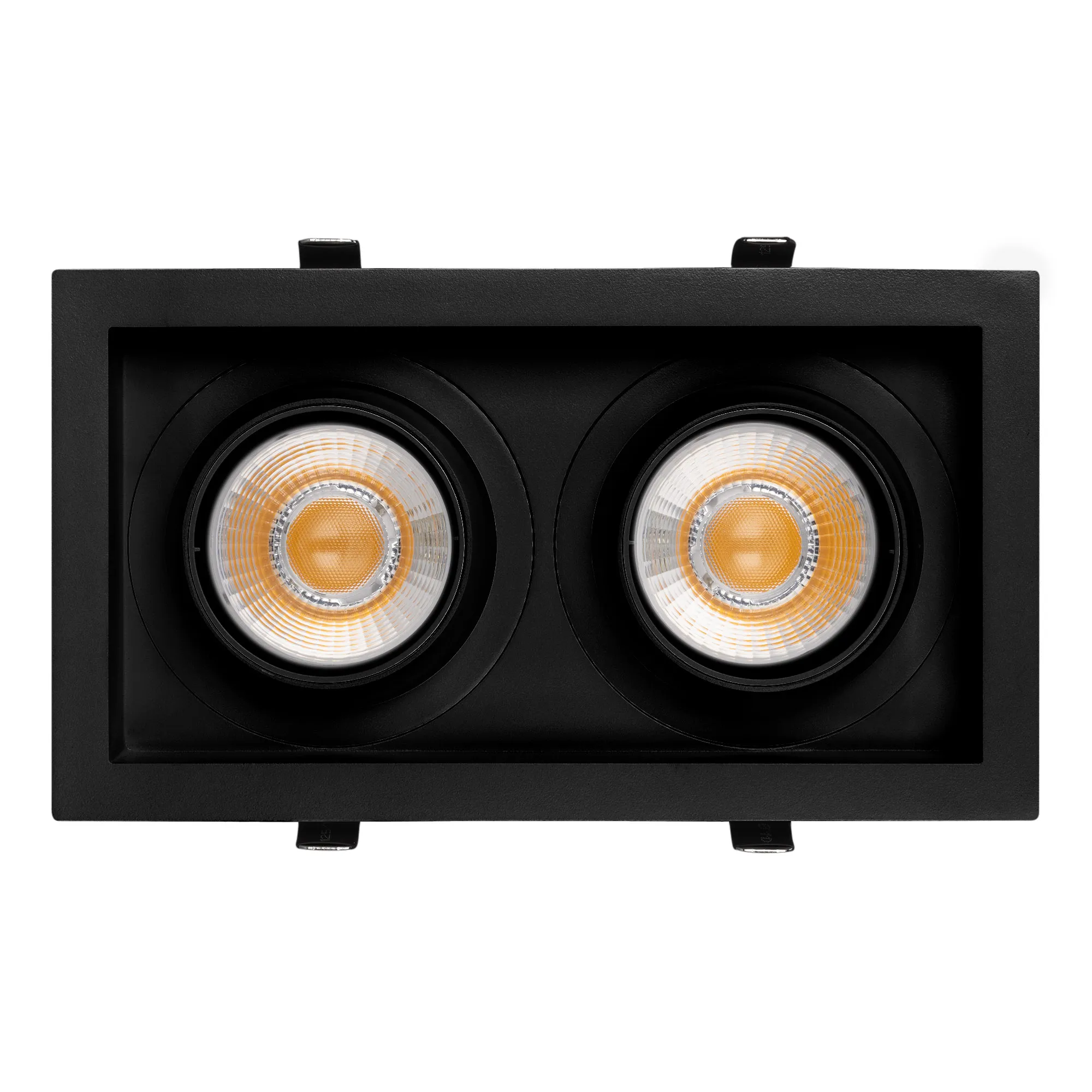 Поставка под заказ от 24 шт. Встраиваемый карданный светильник. Мощность 2х30 Вт, св. поток 6520 лм, 108 лм/Вт, дневной 4000 K, CRI>92, угол 30°, напряжение питания 230 В. Чёрный корпус из алюминия, черная вставка, степень защиты IP20. Размер: длина 250 мм, ширина 140 мм, высота 125 мм. Монтаж встраиваемый, установочное отверстие: длина 230 мм, ширина 120 мм. Драйвер 24-42 В, 750 мА, пульсация <2%.