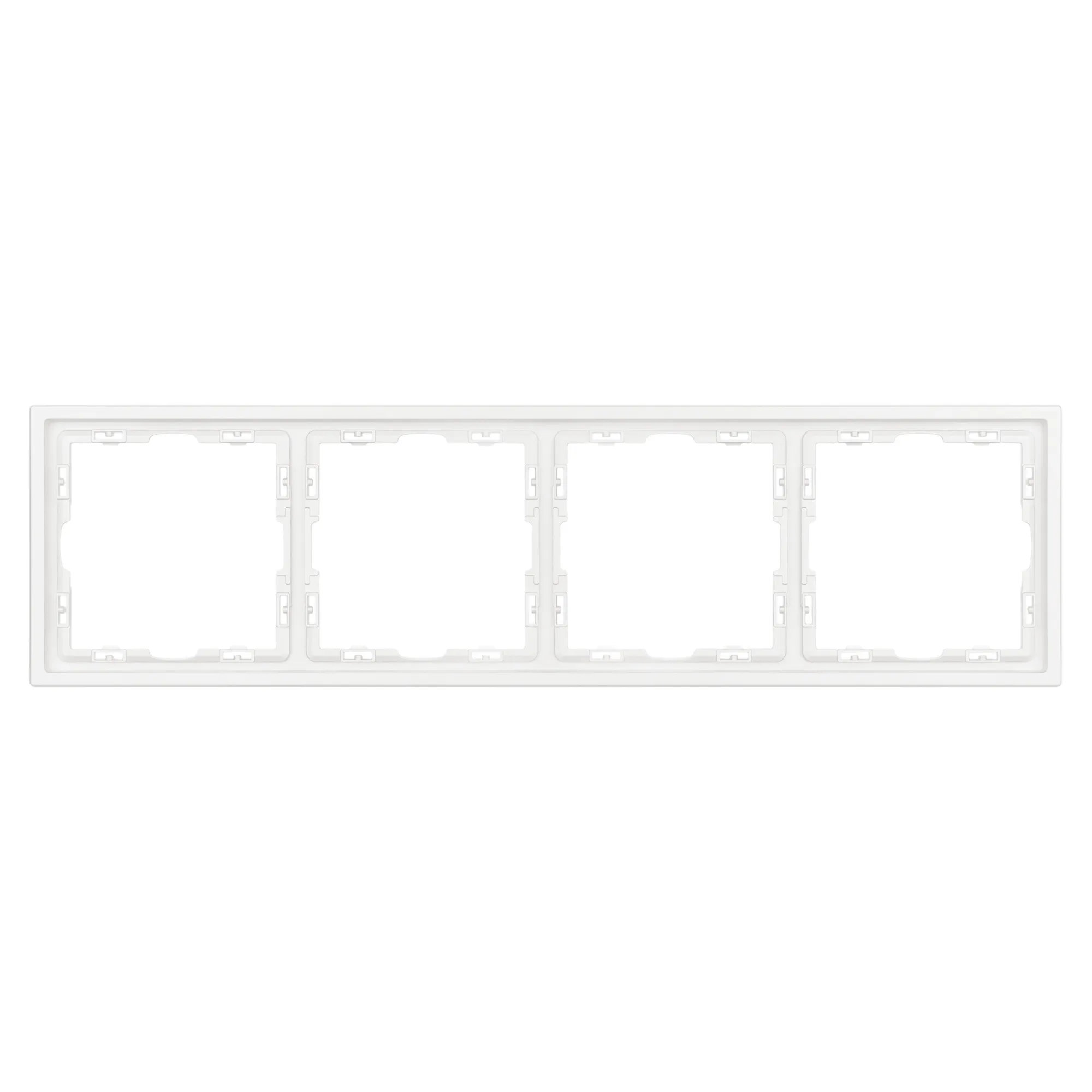 Рамка пластиковая на 4 поста, под встраиваемый механизм. Цвет - белый кварц, с Soft-Touch покрытием. Среднего уровня герметичности IP20. Ориентация монтажа горизонтальная.