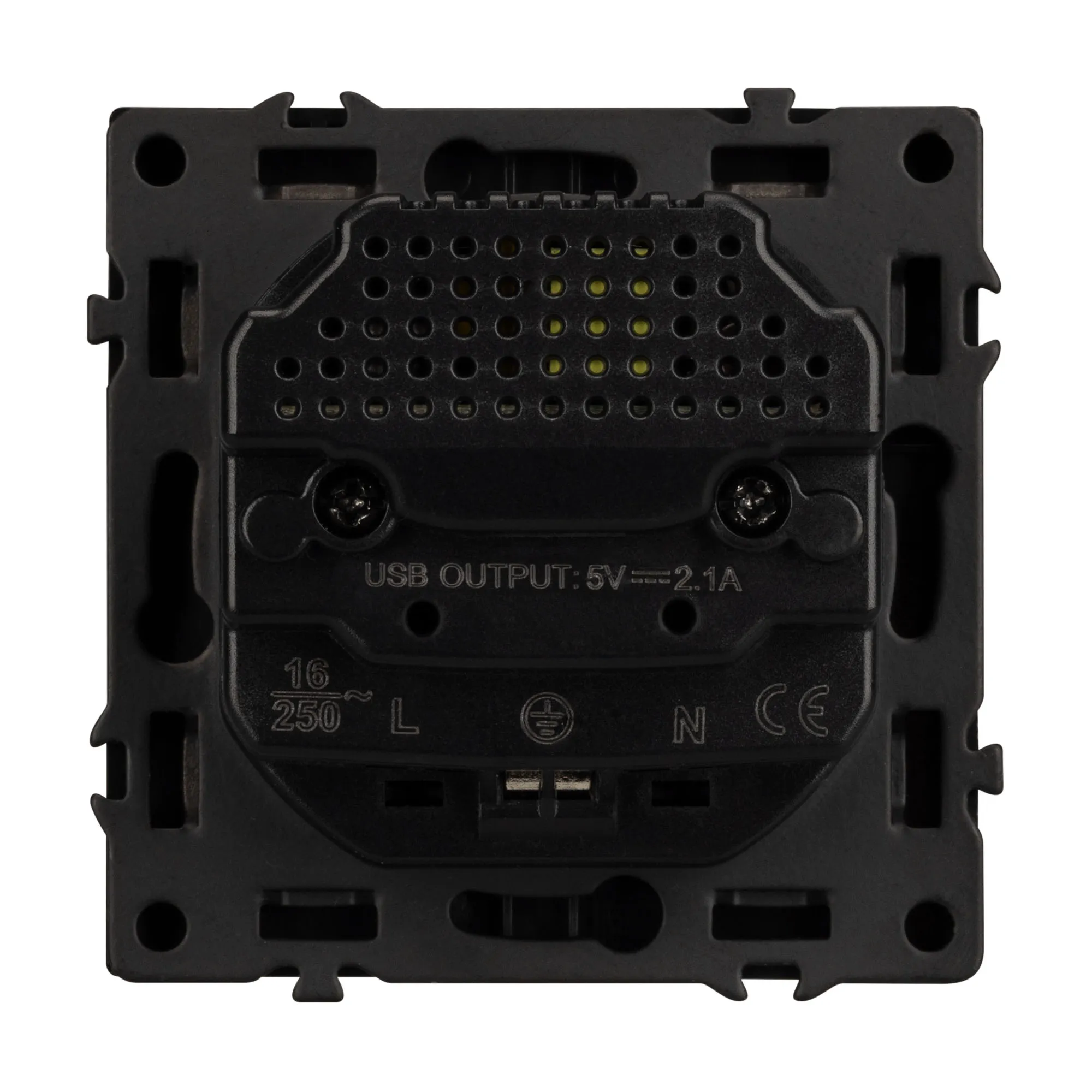 Механизм розетки с заземлением на 1 пост и 2USB Type A порта. Цвет - серый базальт, с Soft-Touch покрытием. Без фронтальной рамки. Уровень пылевлагозащиты IP20. Розетка устанавливается в стандартный подрозетник круглого сечения диаметром 60мм.