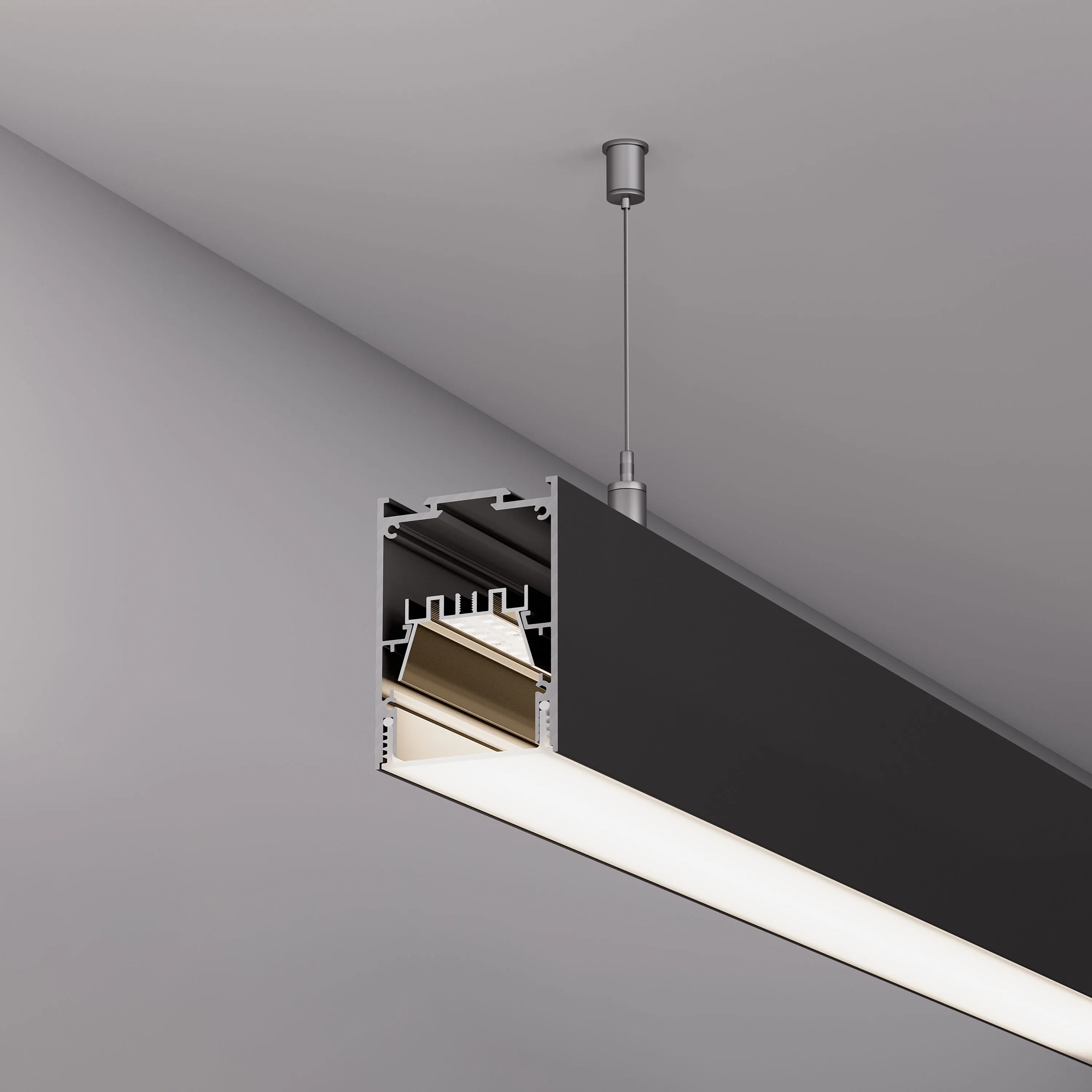 Алюминиевый профиль для светодиодных лент и линеек с возможностью герметизации до IP65. Цвет - чёрный (порошковая окраска), покрытие - зернистое. Габаритные размеры профиля (L×W×H): 2000x54x75 мм. Ширина площадки для ленты 16 мм. Экраны, заглушки и другие аксессуары приобретаются отдельно. Цена за 1 метр.
