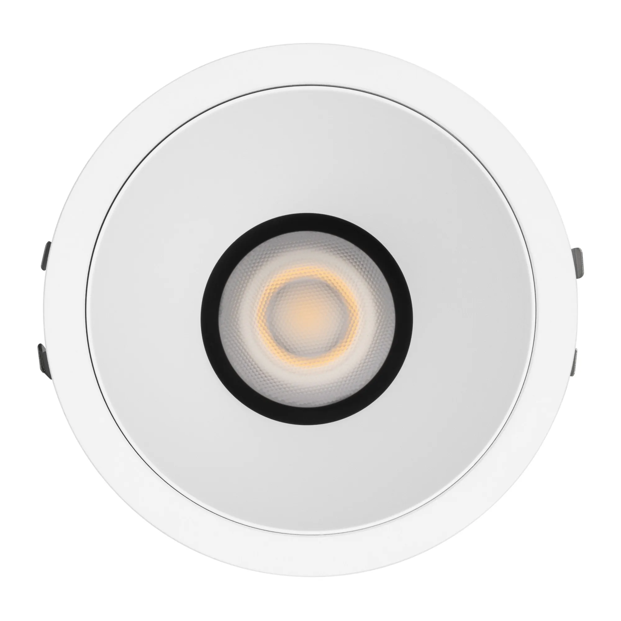 Встраиваемый светильник даунлайт. Мощность 12 Вт, св. поток 905 лм, 75 лм/Вт, теплый 3000 K, CRI>92, угол 55°, напряжение питания 230 В. Белый круглый корпус из алюминия, белый матовый отражатель, степень защиты IP20 . Размер: диаметр 82 мм, высота 86 мм. Монтаж встраиваемый, установочное отверстие: диаметр 75 мм. Драйвер 27-42 В, 280 мА, пульсация <0,5%.