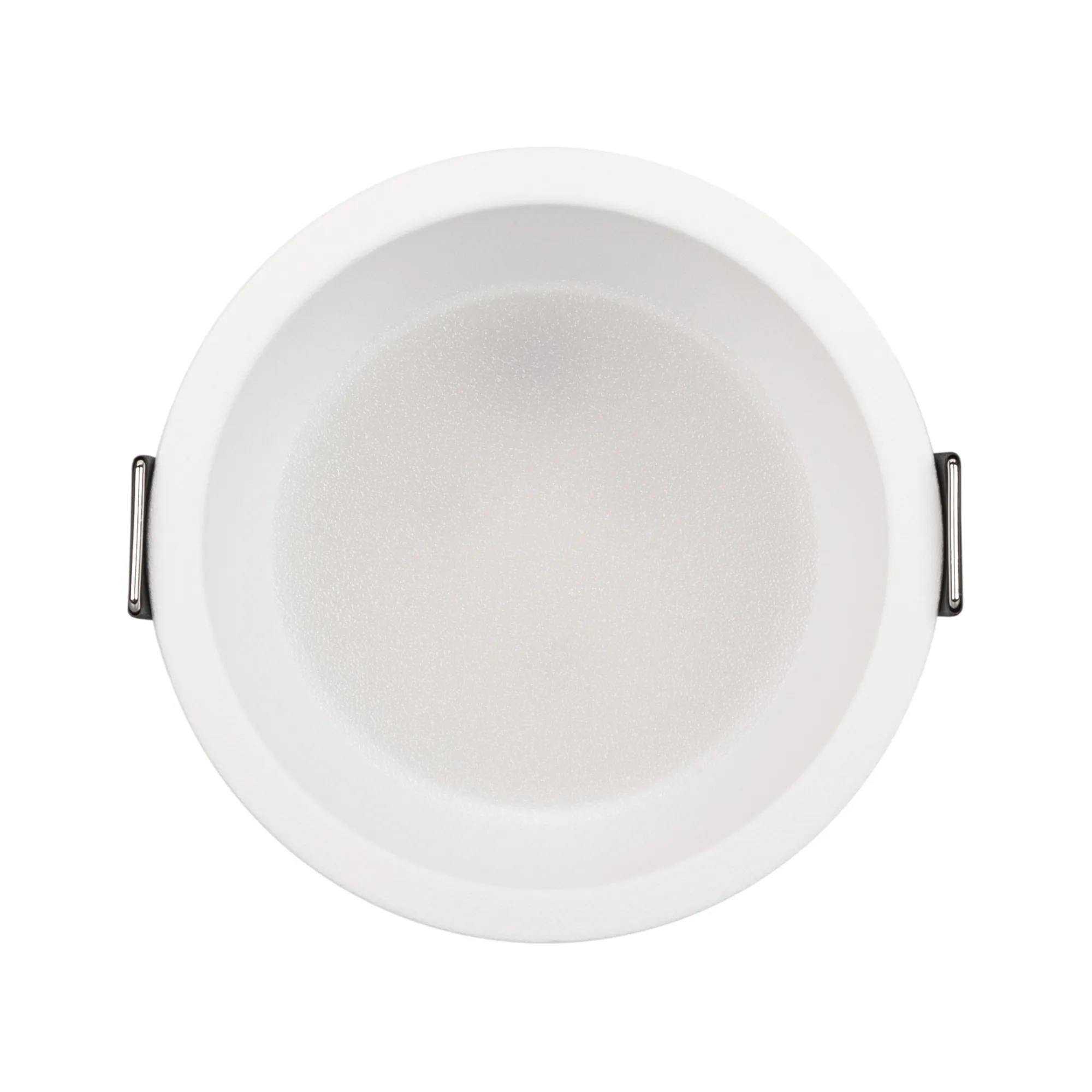 Встраиваемый светильник даунлайт. Мощность 9 Вт, св. поток 595 лм, 66 лм/Вт, тёплый 2700 K, CRI>90, угол 85°, напряжение питания 230 В. Белый круглый корпус из алюминия, степень защиты IP20. Размер: диаметр 82 мм, высота 46 мм. Монтаж встраиваемый, установочное отверстие: диаметр 75 мм. Драйвер 27-42 В, 200 мА, пульсация <2%.