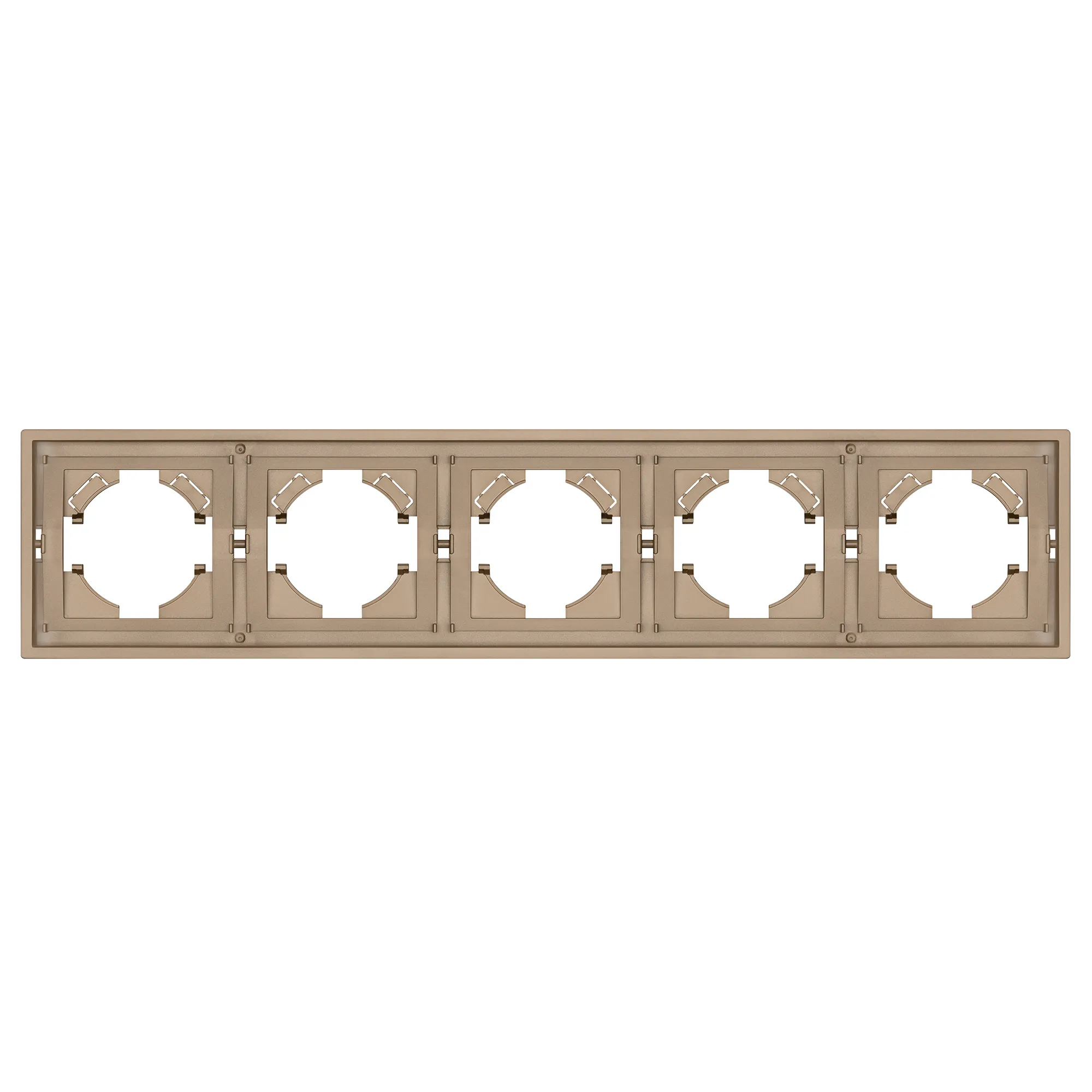 Рамка пластиковая на 5 постов, под встраиваемый механизм. Цвет - песочный. Уровень герметичности IP20. Ориентация монтажа горизонтальная.