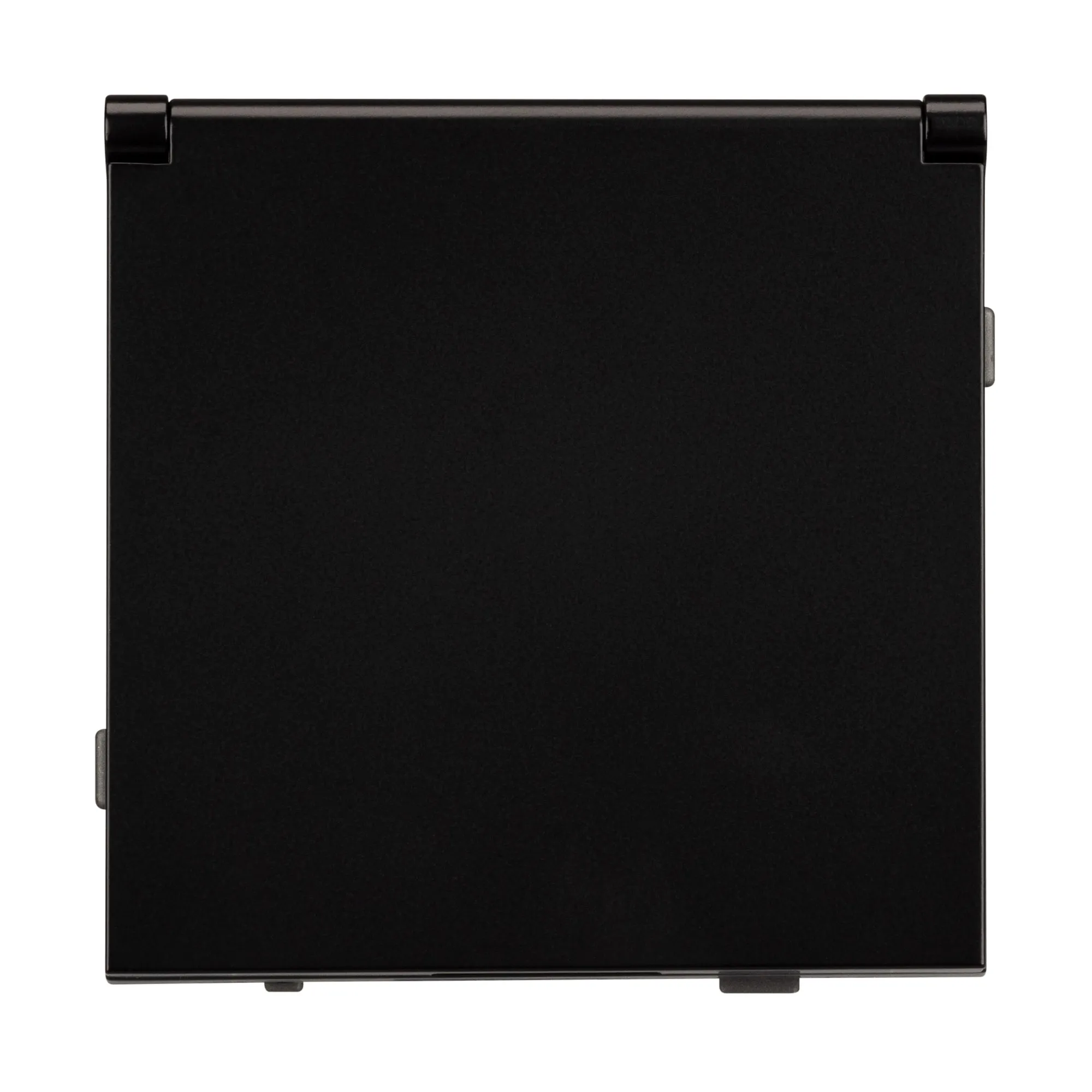 Механизм розетки с заземлением и влагозащитной крышкой на 1 пост. Цвет - черный. Без фронтальной рамки. Уровень пылевлагозащиты IP44. Розетка устанавливается в стандартный подрозетник круглого сечения диаметром 60мм.