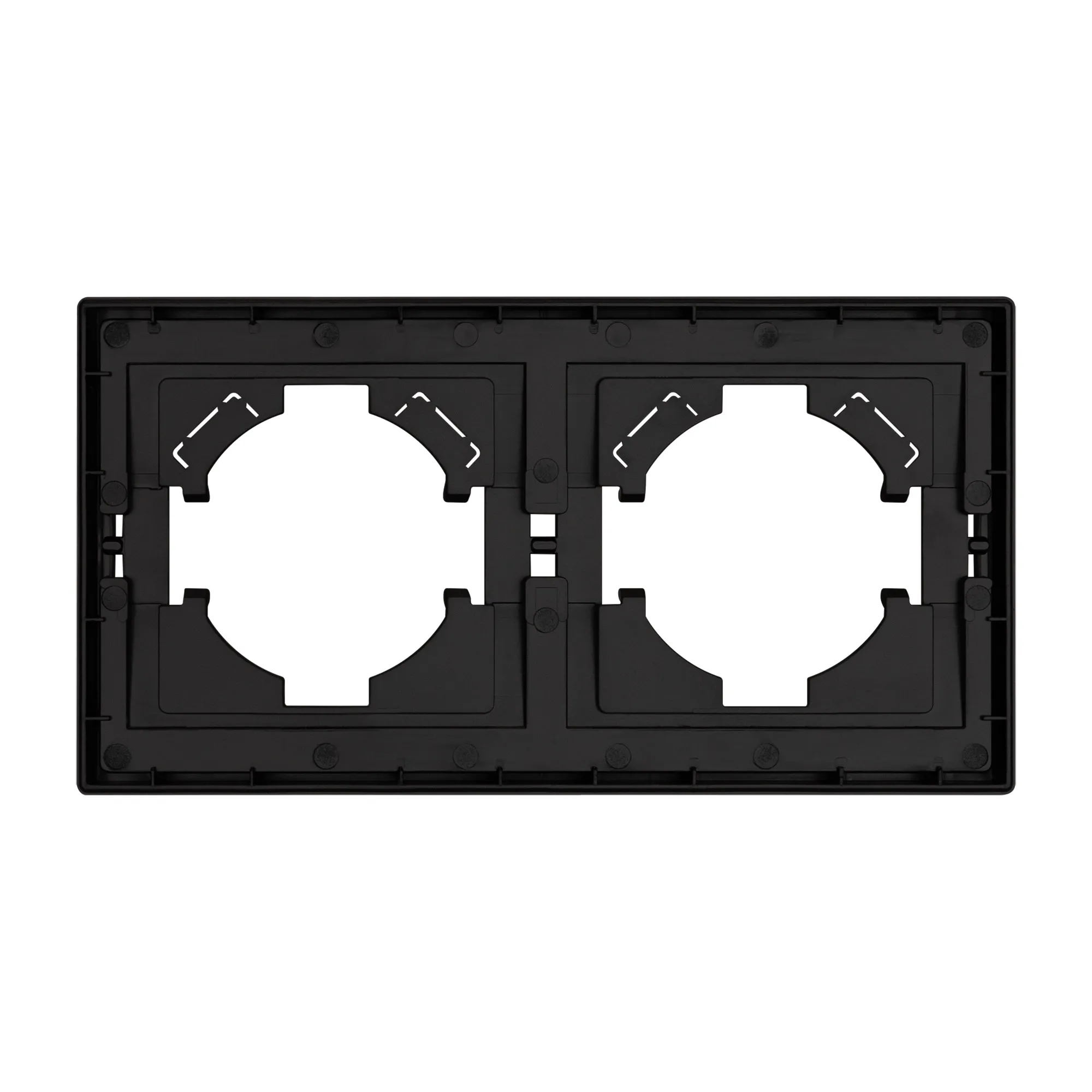 Рамка пластиковая на 2 поста, под встраиваемый механизм. Цвет - матовый черный, с Soft-Touch покрытием. Уровень герметичности IP20. Ориентация монтажа горизонтальная.
