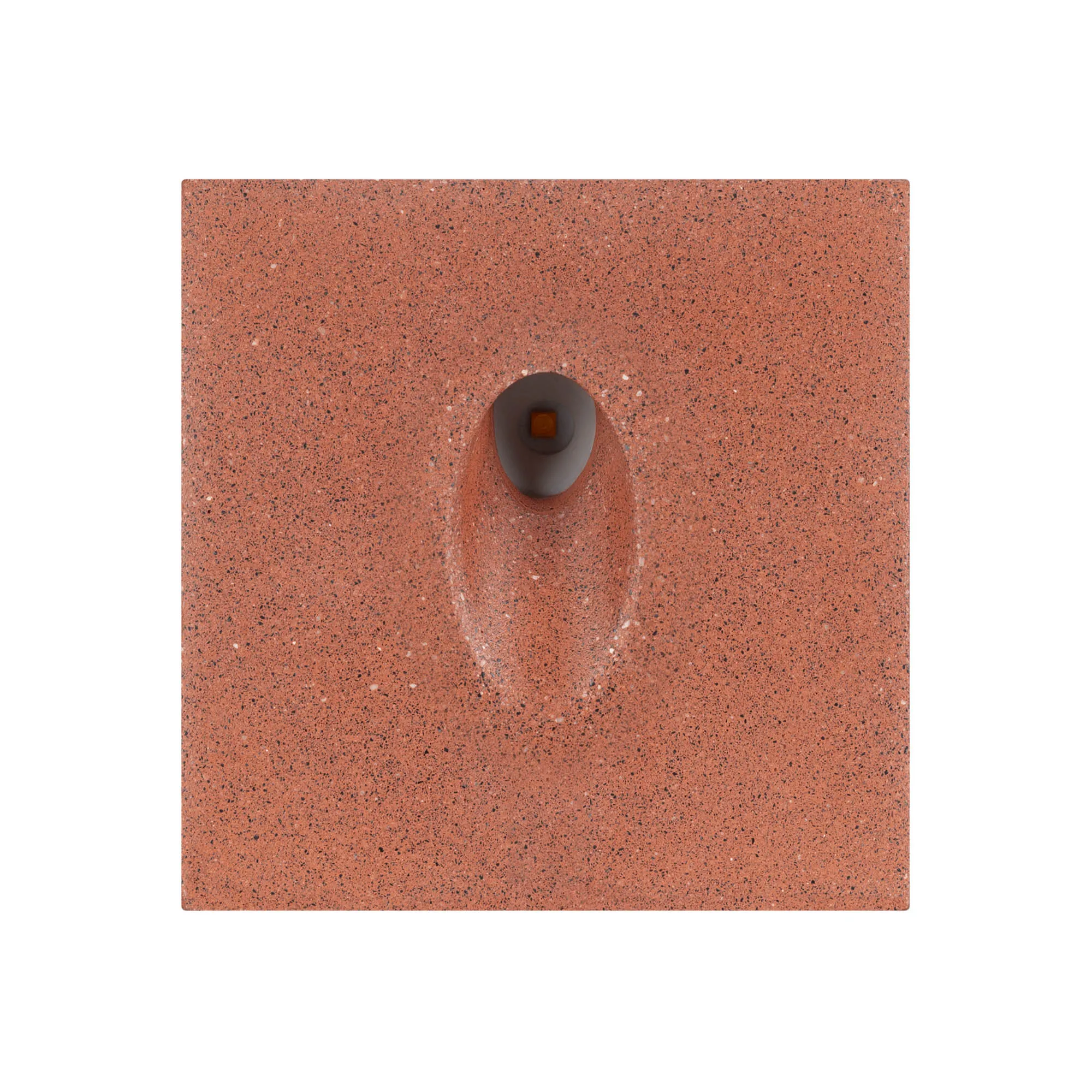 Светодиодный встраиваемый квадратный светильник для стен, лестниц. Мощность 3Вт, световой поток 150 лм, теплый 3000К, угол 45x70°, CRI>80, напряжение 230 В. Квадратный корпус из бетона темно-красного цвета и алюминия. Степень защиты IP65. Питание AC230V, мощность 3Вт. Размеры LхWхH 100х100x76 мм. Драйвер встроенный, пульсация <0.5%.