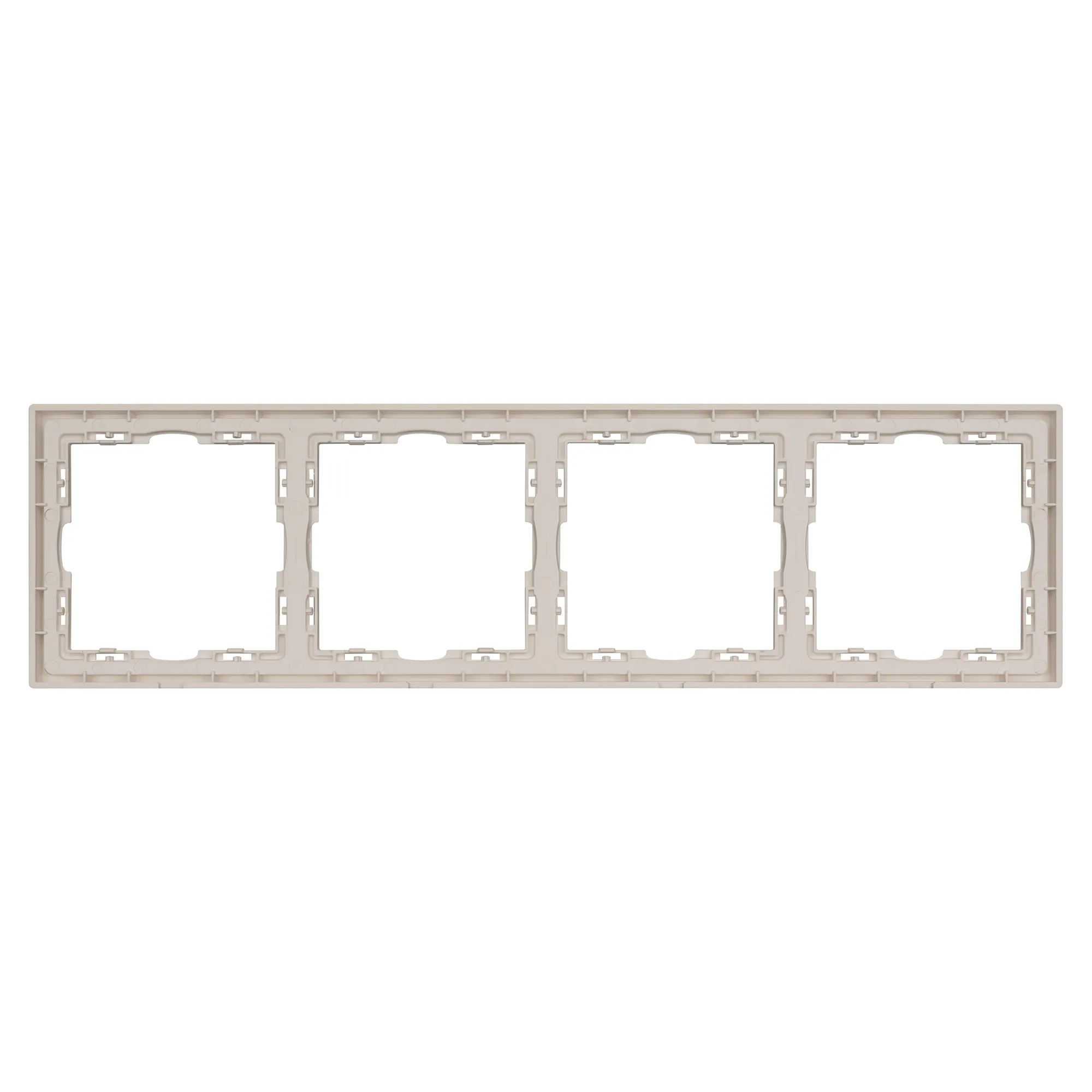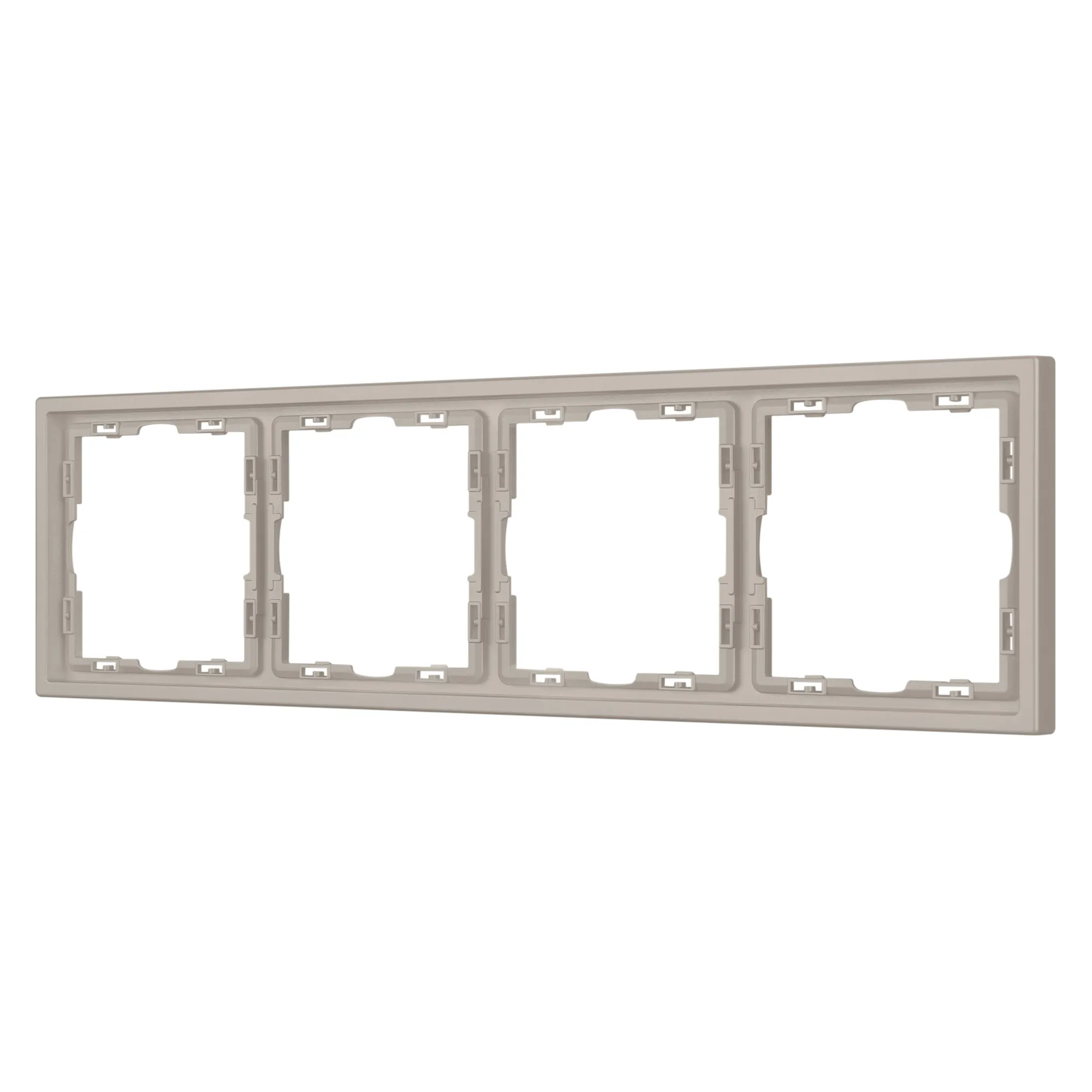 Рамка пластиковая на 4 поста, под встраиваемый механизм. Цвет - кашемир, с Soft-Touch поверхностью. Среднего уровня герметичности IP20. Ориентация монтажа горизонтальная.
