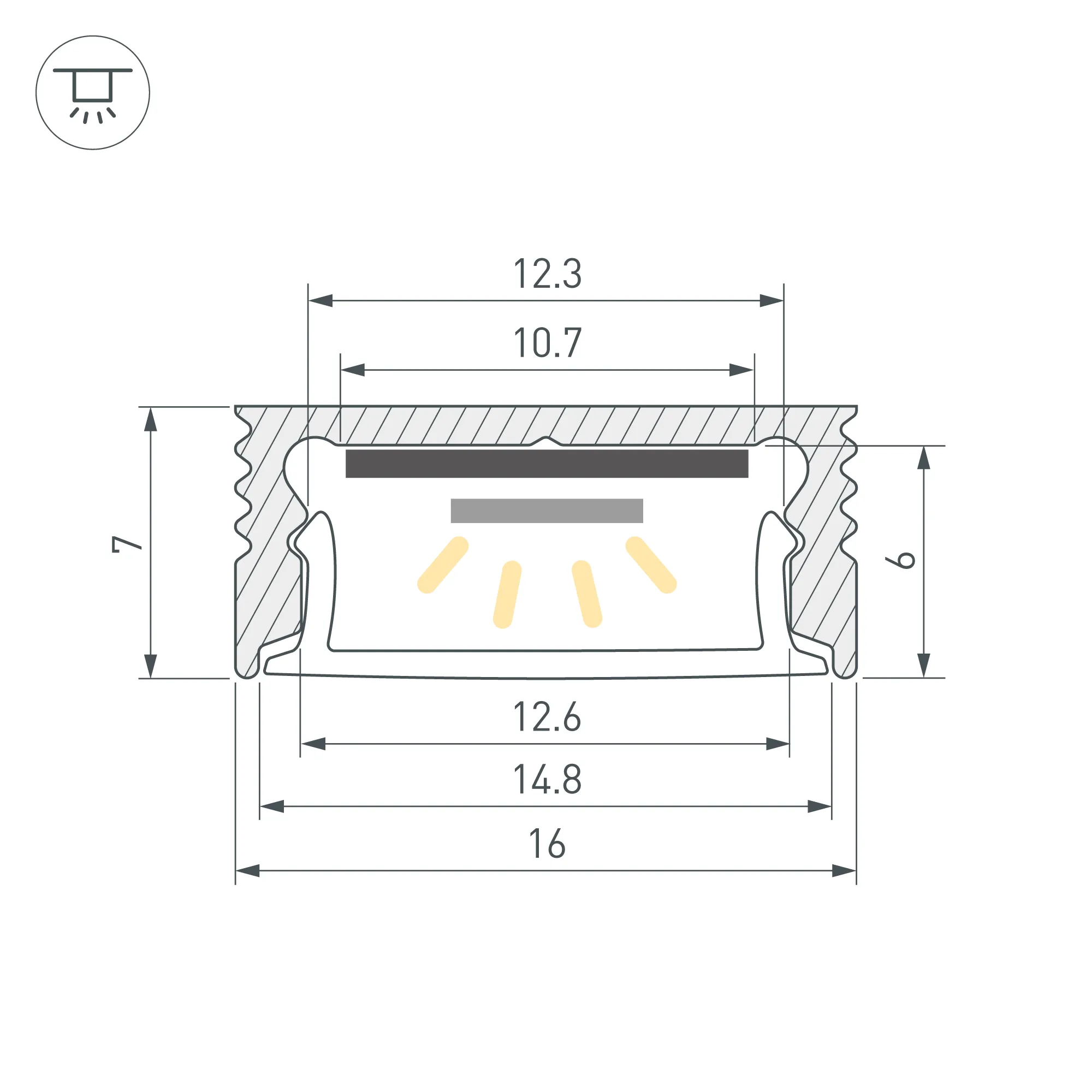 Алюминиевый анодированный профиль для светодиодных лент и линеек. Габаритные размеры (L×W×H): 2000x16x7 мм. Ширина площадки для ленты 10,7 мм. Экраны, заглушки и другие аксессуары приобретаются отдельно. Цена за 1 метр.