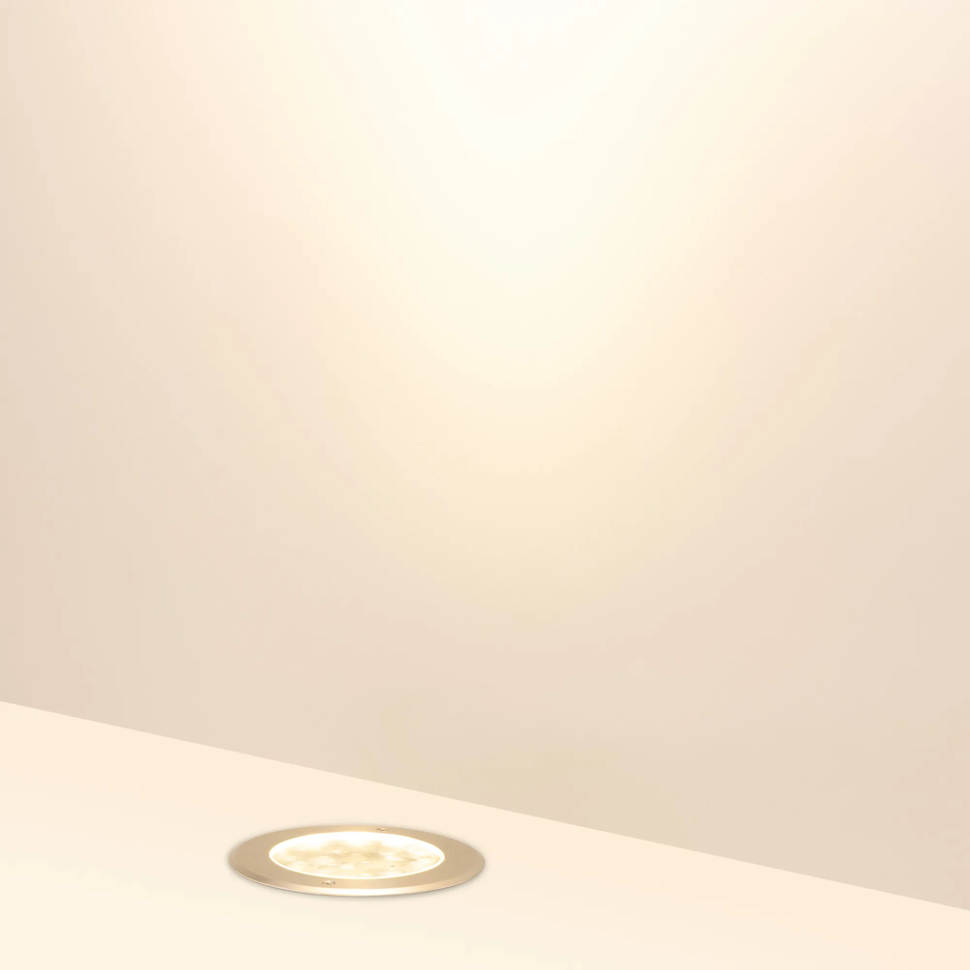 Встраиваемый светодиодный светильник для грунта и пола. Мощность 36Вт, световой поток 2824 лм, цвет теплый 3000К. CRI(Ra)>80, угол 35°. Круглый влагозащищенный корпус IP67, нержавеющая сталь. Экран закалённое стекло. Питание 230В, 36Вт. Размер DxH Ø210x125мм. Установка в отверстие DxH Ø195x119мм.