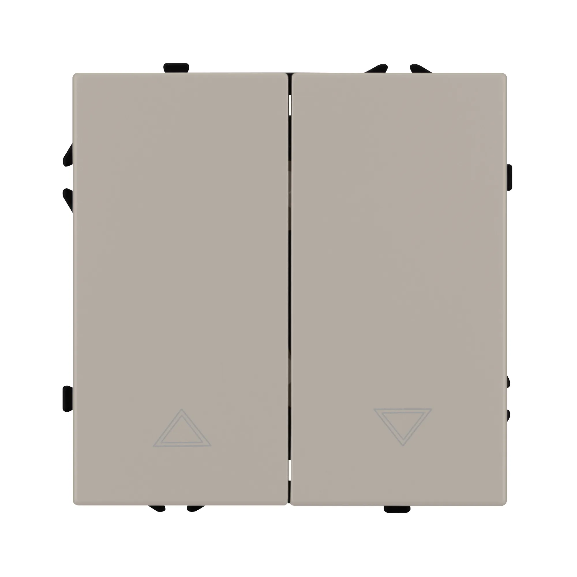 Механизм выключателя управления шторами на 1 пост 2 перекидные клавиши. Цвет - кашемир, с Soft-Touch поверхностью. Без фронтальной рамки. Уровень пылевлагозащиты IP20. Выключатель устанавливается в стандартный круглый подрозетник круглого сечения диаметром 60мм.